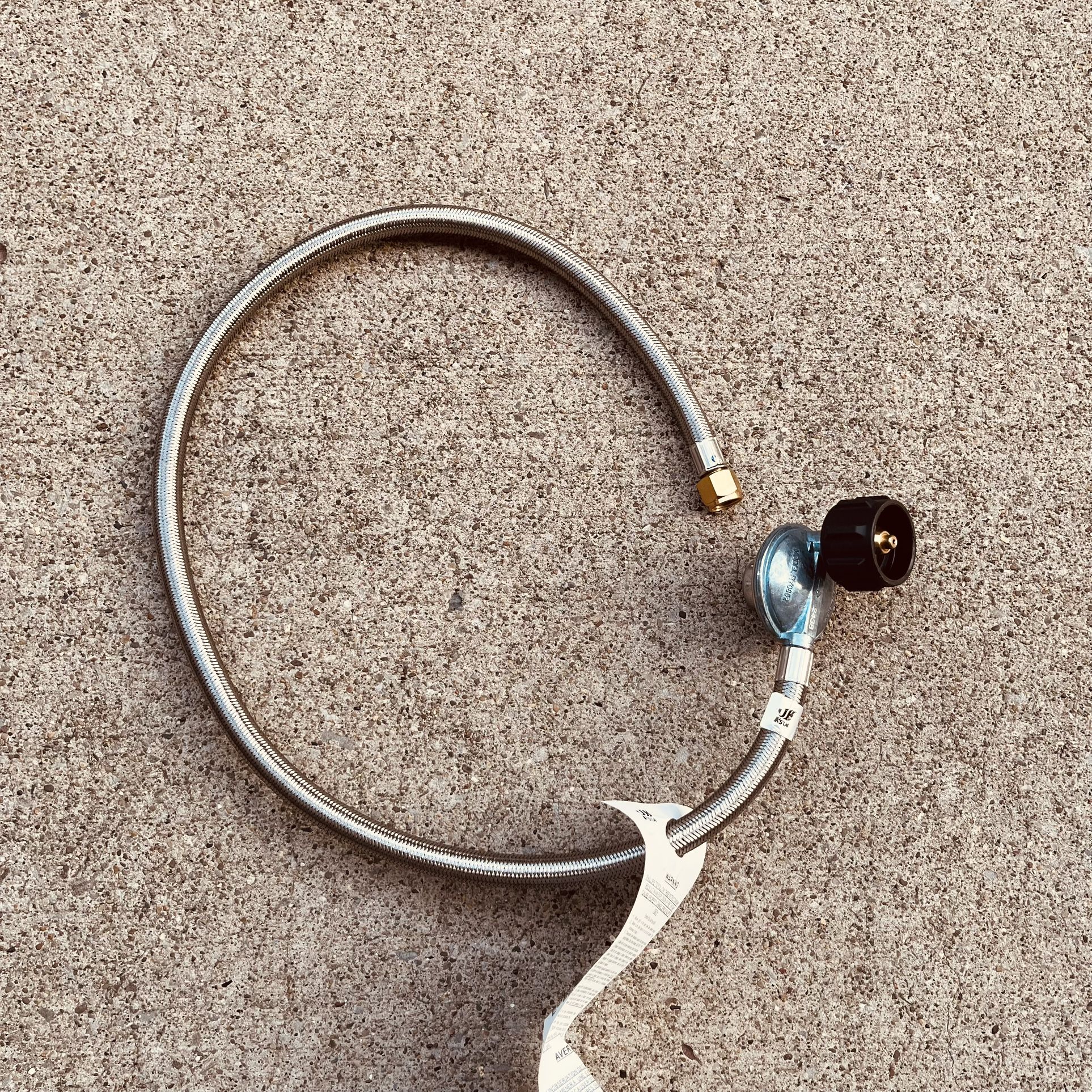 3 foot hose. Please note the female connection is 3/8th. Fits most blackstone but not all.