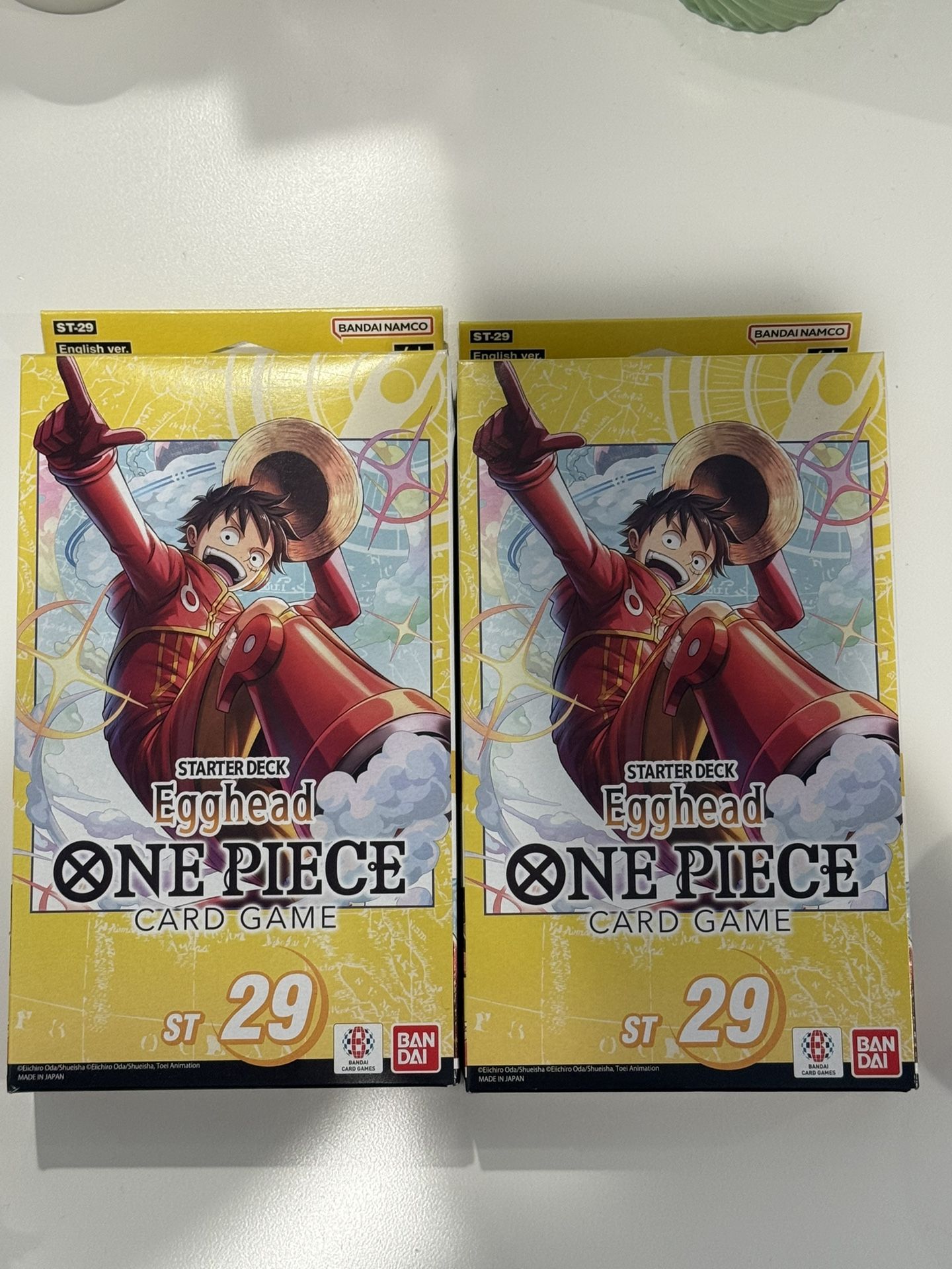Starter Deck 29: Egghead One Piece st29 Pretty sure there. A luffy or nami in one of them looking to sell asap before I rip myself reach out not selling the card just showing what’s in there the chase you’re mainly looking for market price is 90-100$ all listing have been around that