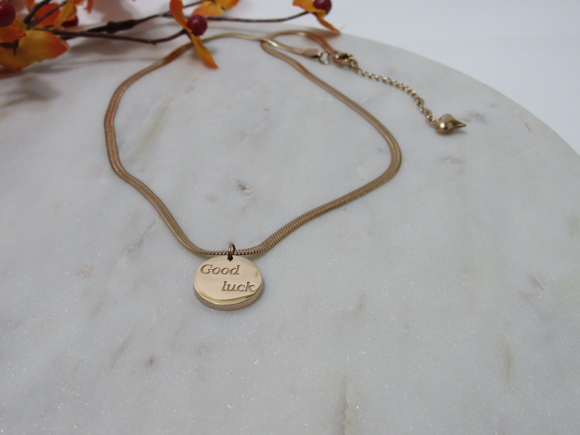 Gold Plated Round Good Luck Letter Necklace Box Chain For Women