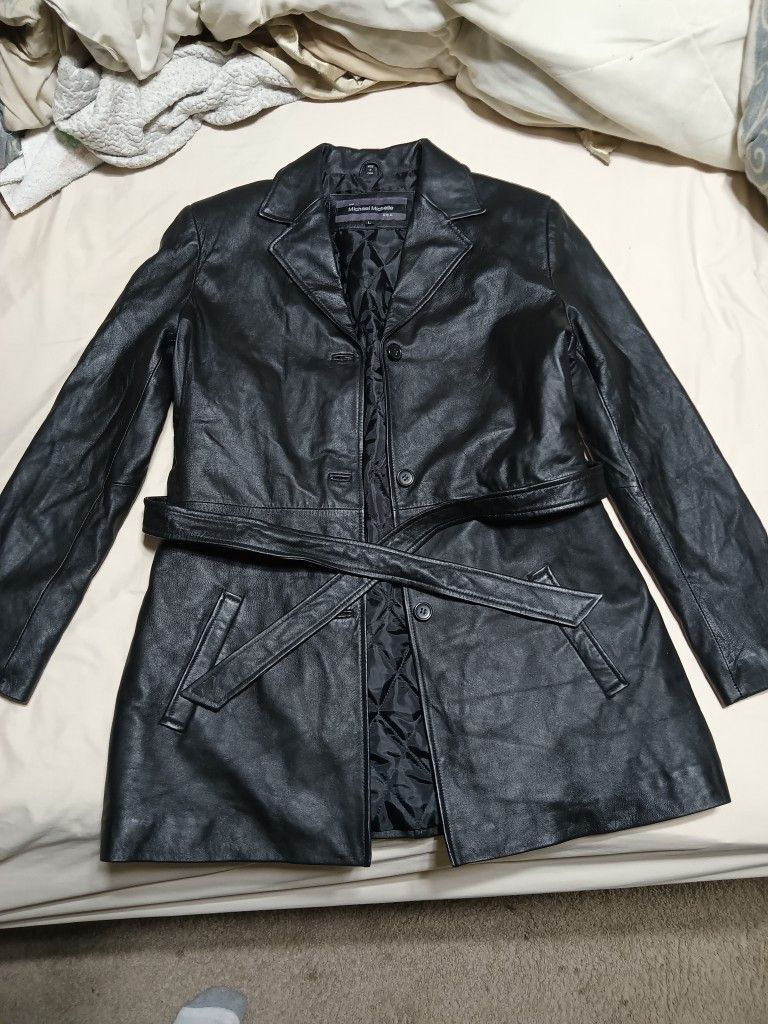 Ladies leather coat size large in excellent condition no rips no tears no holes in the pockets... $40