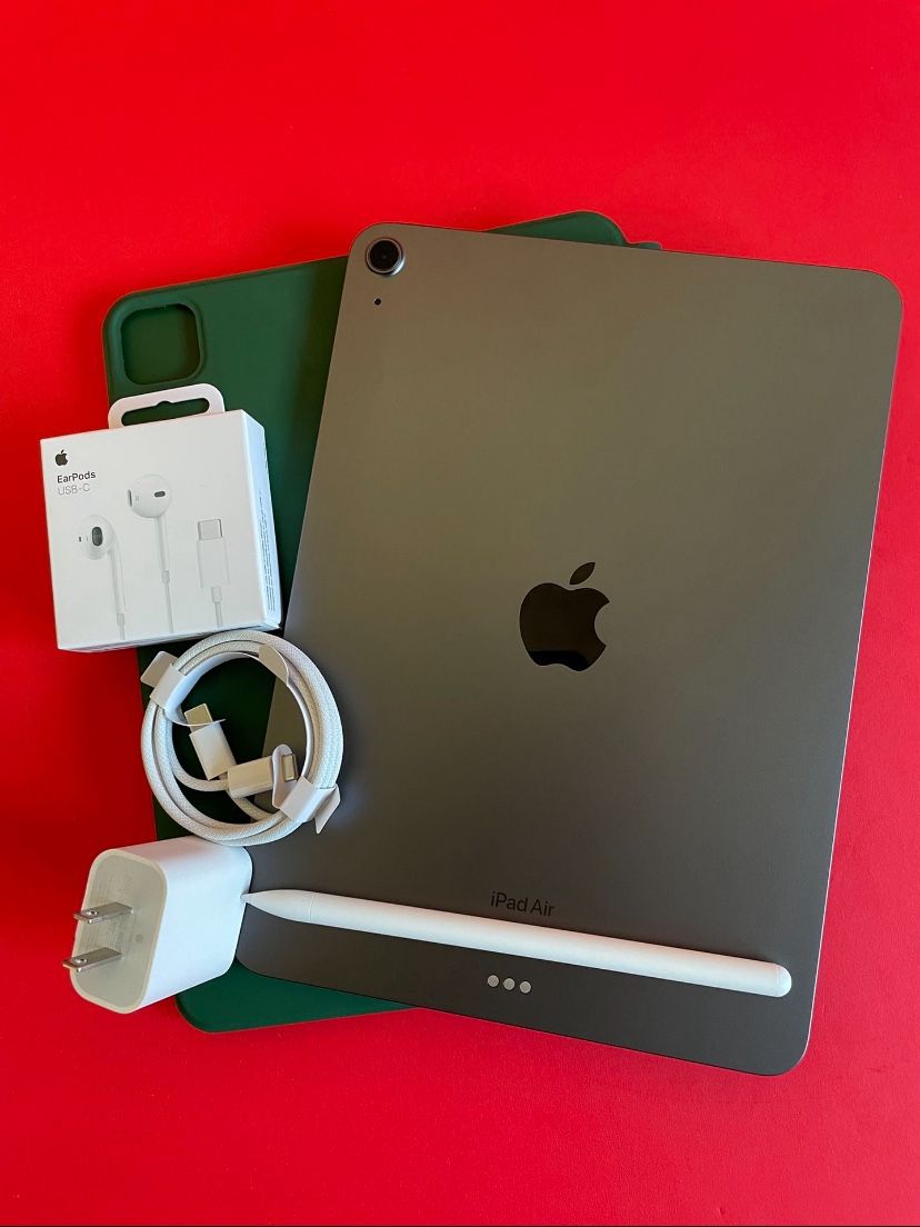 Apple IPad Air 5th Generation (10.9” Liquid Retina/ M1 chip / 2022 Model) 64GB with pen, keyboard case & Accessories (256gb $529)