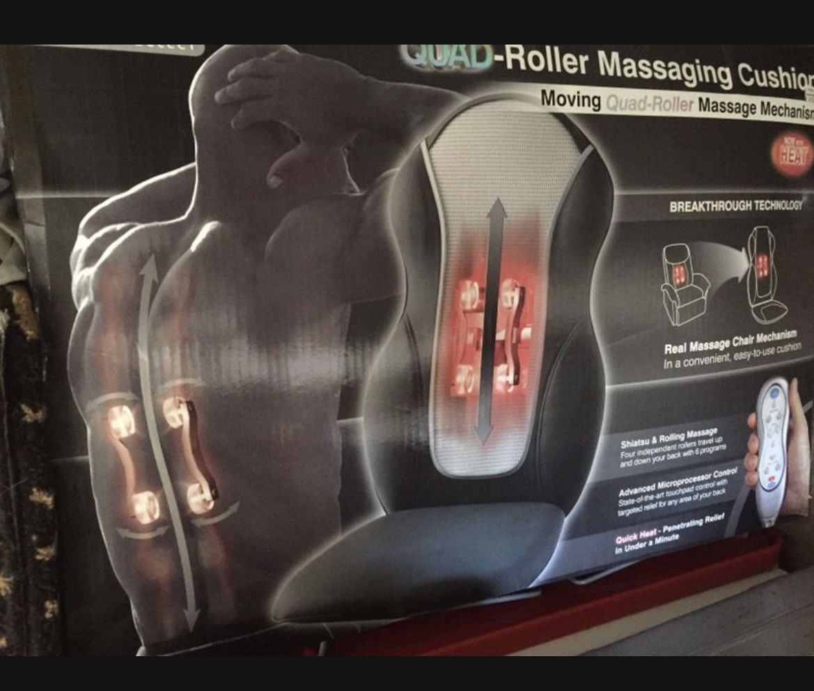 Brand new in box LLX size Chair massager. This item is the LARGEST SIZE OF ITS generation XXL. Great size for any chair has heat , remote control massaging features.