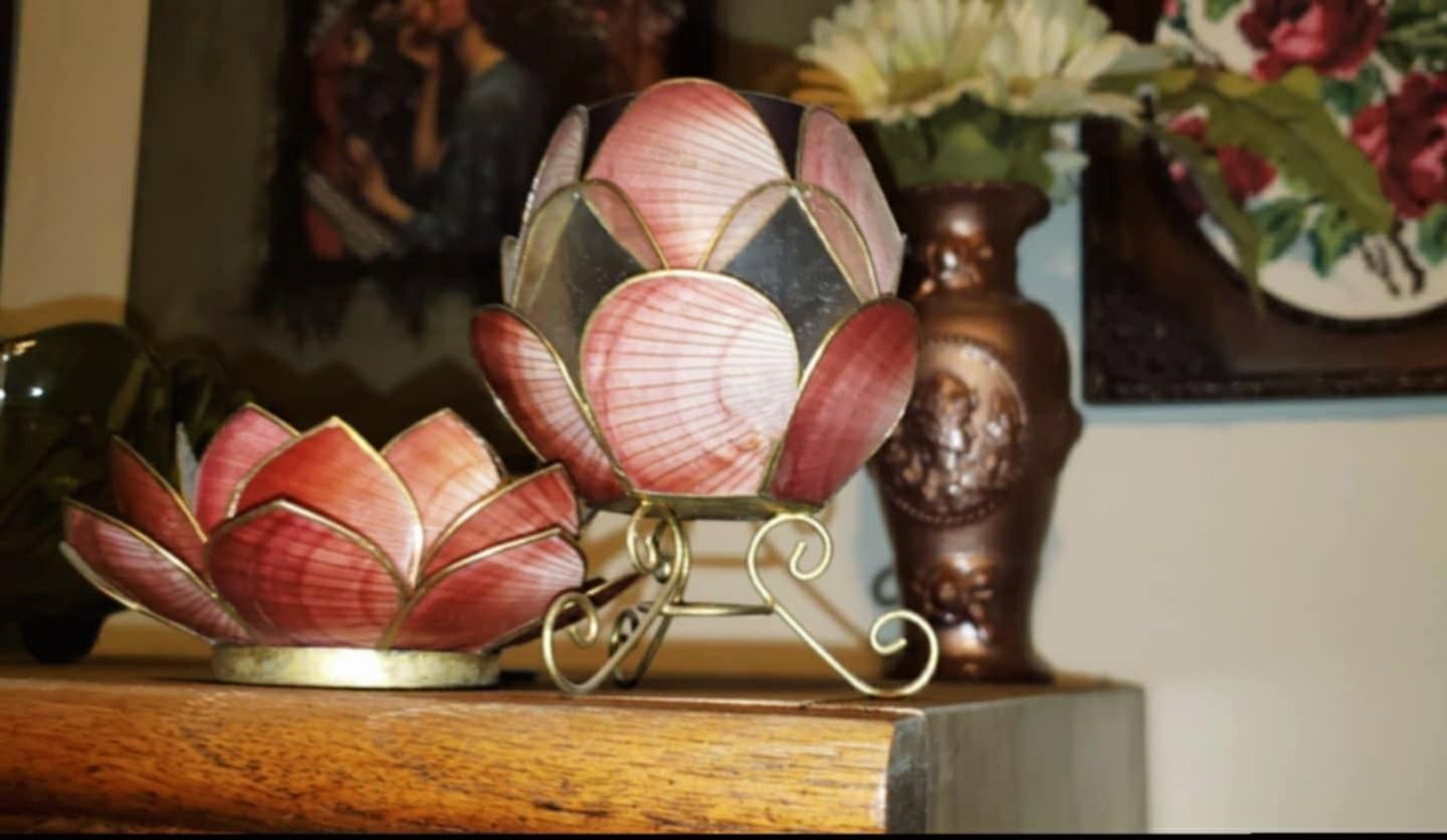 X2 VINTAGE BURGUNDY ROSE GOLD FLORAL FLOWER LOTUS TEALIGHT VOTIVE CANDLE HOLDER ACCENT TABLE DECOR DISPLAY KNICKKNACKS