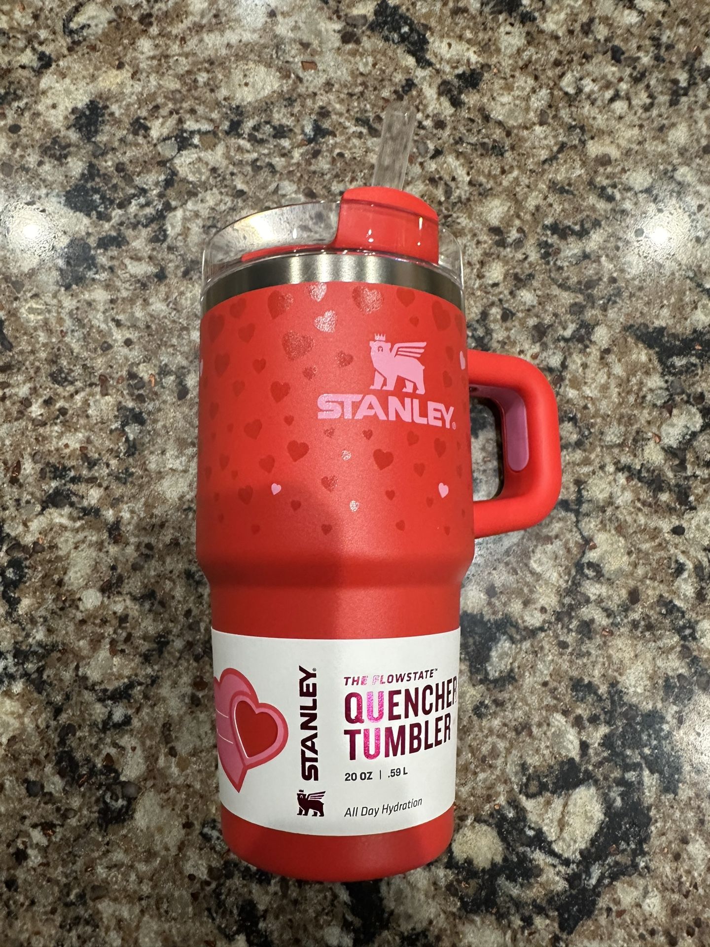 The Stanley 20 oz H2.0 Flowstate Quencher Tumbler in Valentines Day Sweet Hearts Red is a stainless steel tumbler with a handle and a hearts pattern. It is a vacuum flask or mug designed for kitchen storage and organization, with a capacity of 20 ounces. The tumbler is branded by Stanley and features a sweet hearts red color, making it a good choice for Valentine's Day. Brand New ! Released: 12/29/24 The Red Valentine’s Day - Target Exclusive 20oz Tumbler with handle. Sold Out. Release Date: 12/24/24 This listing is for a In Hand Item. I will communicate with you. Please reference pictures for condition of item or items. Came this way from Target In Store. No cancellations / No Returns / No Refunds. Please reference pictures. This item is in Stock. Please message me with questions or concerns. Also posted Via Ebay if looking for it to be shipped. Happy Shopping ! Please message with questions or concerns. Meet locally or at police station. Cash Only. 35 cash Also posted on FB