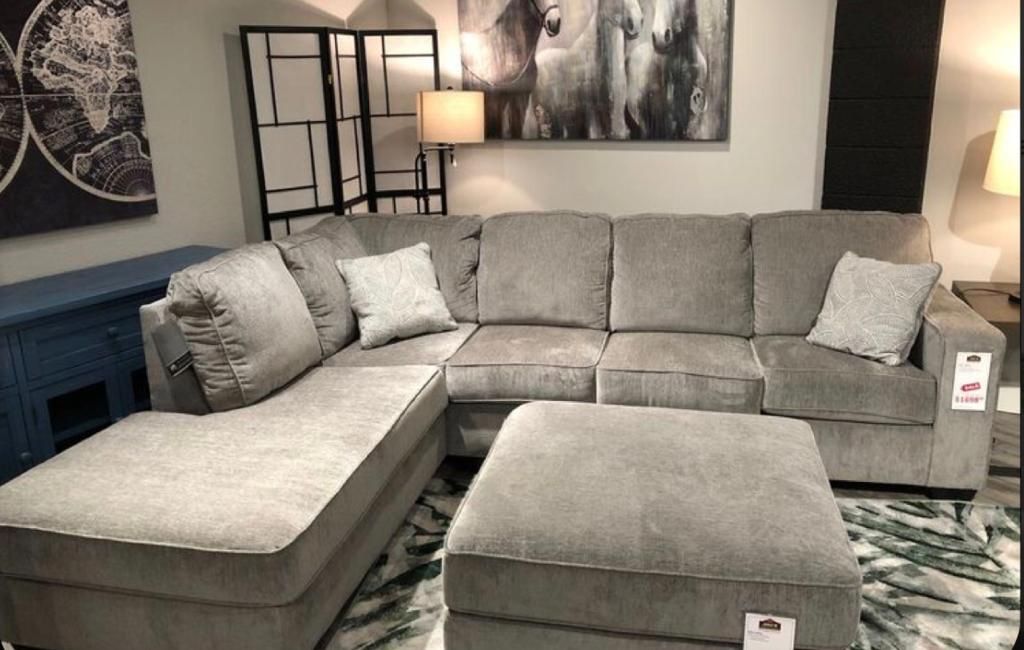 Grey 2 Piece Sectional With Chaise / Sofa / Living Room 👍 Fast Delivery 🚚 Brand New👍