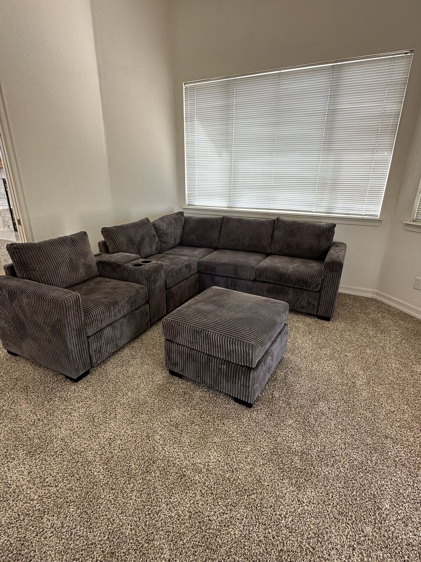 4-Piece Sectional Set W/ Ottoman Reversible Loveseat + Reversible Loveseat W/USB Console & Cup Holders + Corner Wedge + Cocktail Ottoman Color: Dark Gray Seccional de 4 Piezas Conector usb Color Gris Entregamos a domicilio π₯We are voted #1 on offer up, please also view other options on our page!!! Call or Tex βοΈπ²π±π (213) 713 - 74-89 We deliver directly from the manufacturer to your home π . π Delivery is only $40 π οΈ Assembly is an extra charge. Price on assembly depends on which item you order! π΅ We accept cash on delivery π₯We are voted #1 on offer up, please also view other options on our page!!! Beds, bedroom sets, sectional, sofas, daybed, futon, vanity, dining set, chairs, recliner, Loveseat, dresser, queen bed, king bed, desk, kitchen cabinets, shaker The he furniture requires some assembly but is very simple to set up and includes everything needed to set up Our price are firm Pay cash or Zelle No showroom. We are an online store Everything is brand new delivery directly from the manufacturer.