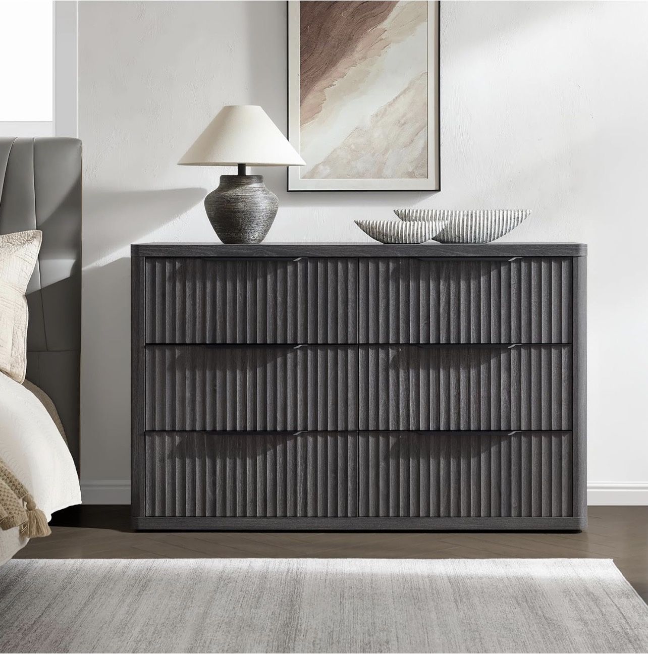 Dresser for Bedroom 53.5" Wide 6 Drawer Dressers & Chests of Drawers for Closet Long Large Modern TV Stand Set for Clothes Storage Fluted Clothes Clos