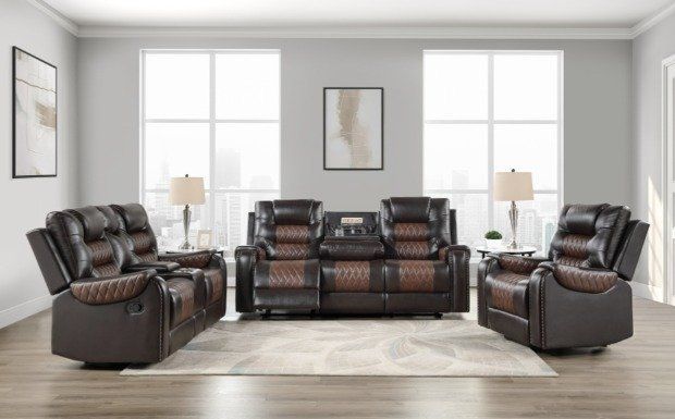Features: Brand New Two tone color features 2 shades of brown & Black & Grey Diamond Stitching Sofa Features Drop down table w/usb ports Loveseat features 2 cup holders Black Friday Recliner Set Sale Price @ $1375.00 (Includes: Recliner Sofa + Recliner Loveseat) We offer various finance plans $39 down same as cash with no interest for 90 & 100 days. Longer financing plans are also available. Lowest prices, great quality products and exceptional service guaranteed. We also have a wide range of other living room, bedroom and dining room products to choose from at highly affordable prices. For buying visit Splendid Furnishings located at 4073 Lavista Road, Suite 311, Tucker GA 30084 or call 470-269-9301.