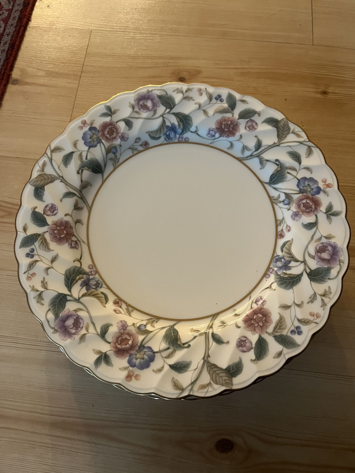 Like new! 42 piece set. Eight dinner dishes, eight salad dishes, eight dessert dishes, eight tea/coffee cups, eight saucers, serving bowl, creamer, sugar bowl. No chips.