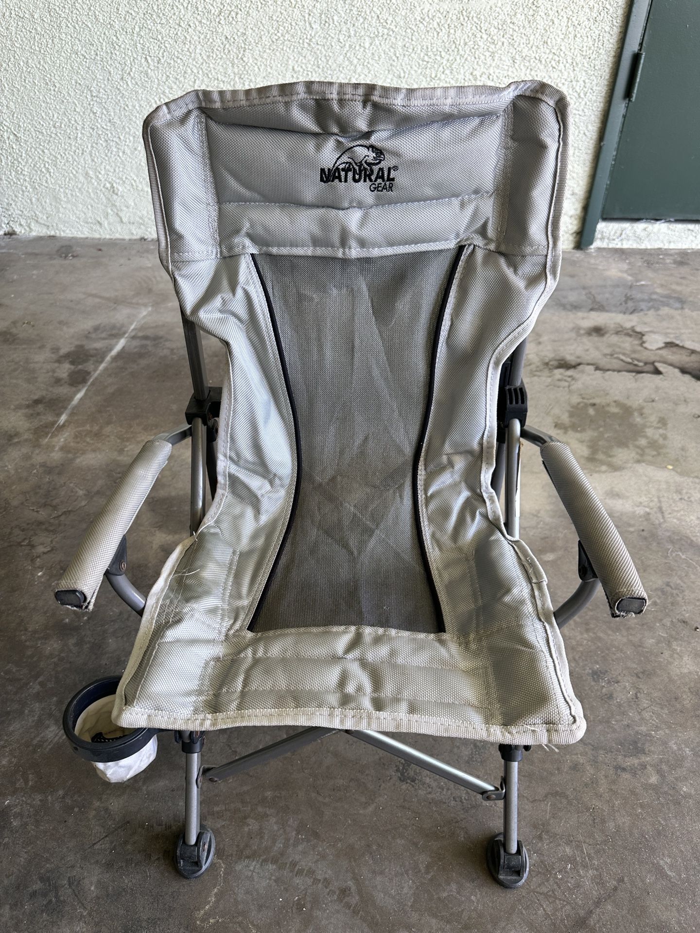 Very sturdy small child’s lawn folding chair. Comes with carrying bag. Bag is beat up but chair is in good condition. Check out photos provided.