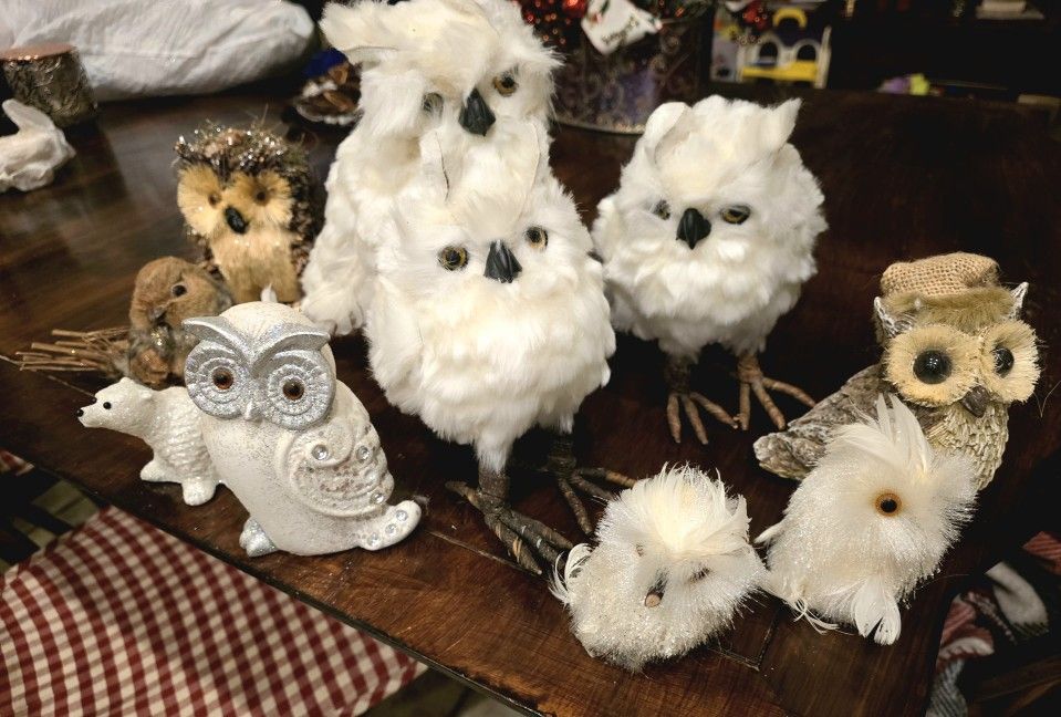 In perfect condition. The tallest owl is 10in. The smallest is the bear and it's 3in. All the other animals are in between. Located off of Greenway and Dysart in Surprise. Bears, owls, birds, Christmas, presents, wreath, Garland, decor, couch, table, chair, tree, toys, baby, lights, blanket, bedspread, washer, dryer, jacket, skis, pants, shirt, dress, dresser, bed, mattress, sheets, stool, refrigerator, moose,deer,stockings, gift wrapping, TV, electronics, handbags, ornaments.