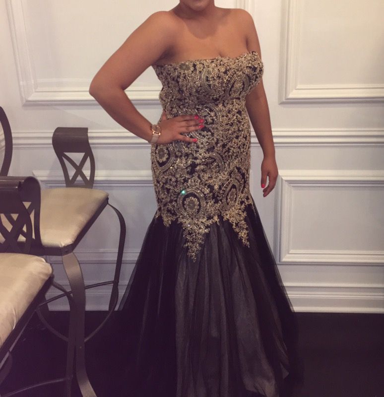 Black and gold mermaid dress! Wore once for prom! Paid over $400 at PromBay! Size 16 Corset Mermaid