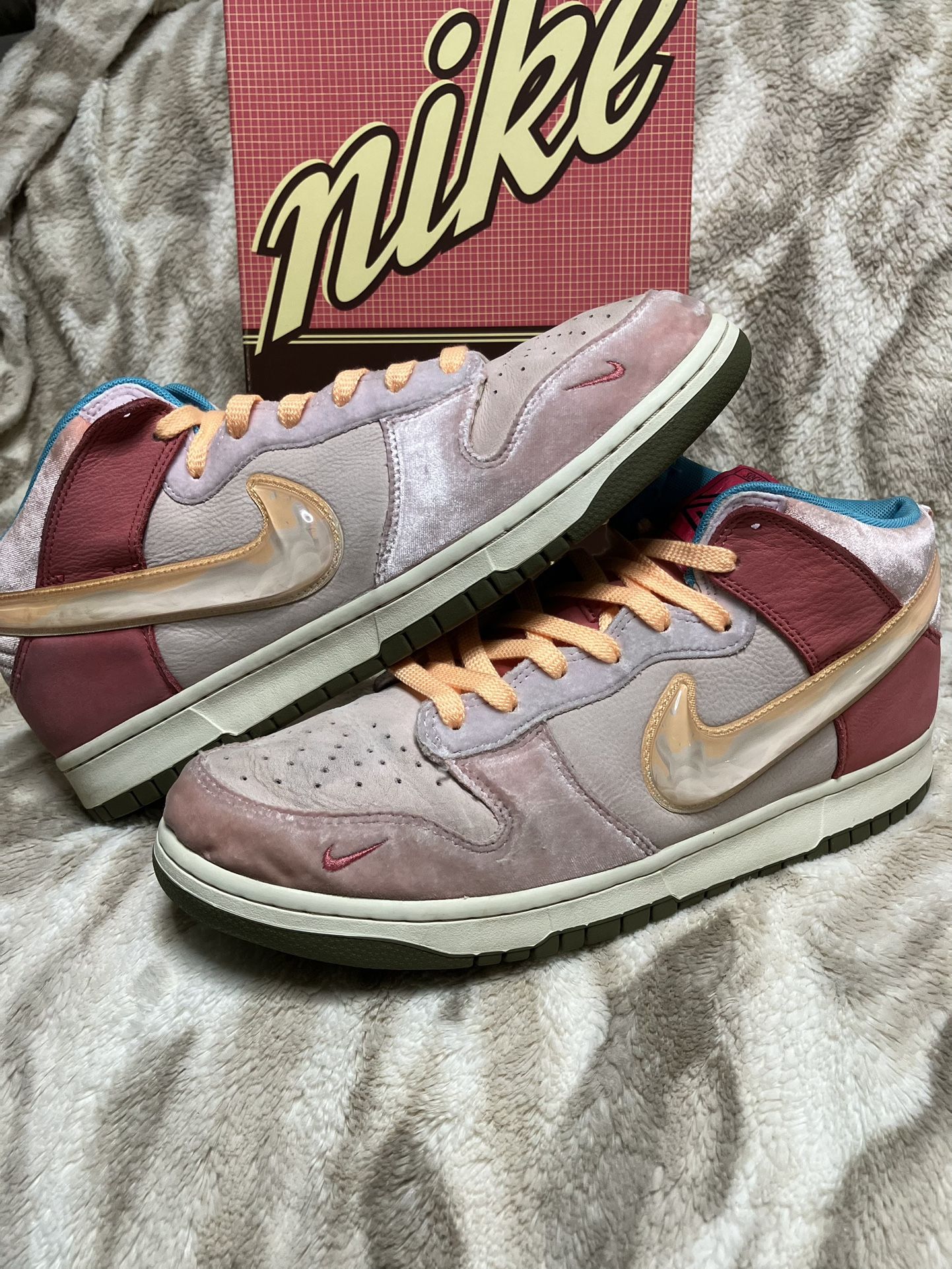 Sz 13m- Nike Dunk High X Social Status Free lunch Strawberry Milk- Used/ Og Box