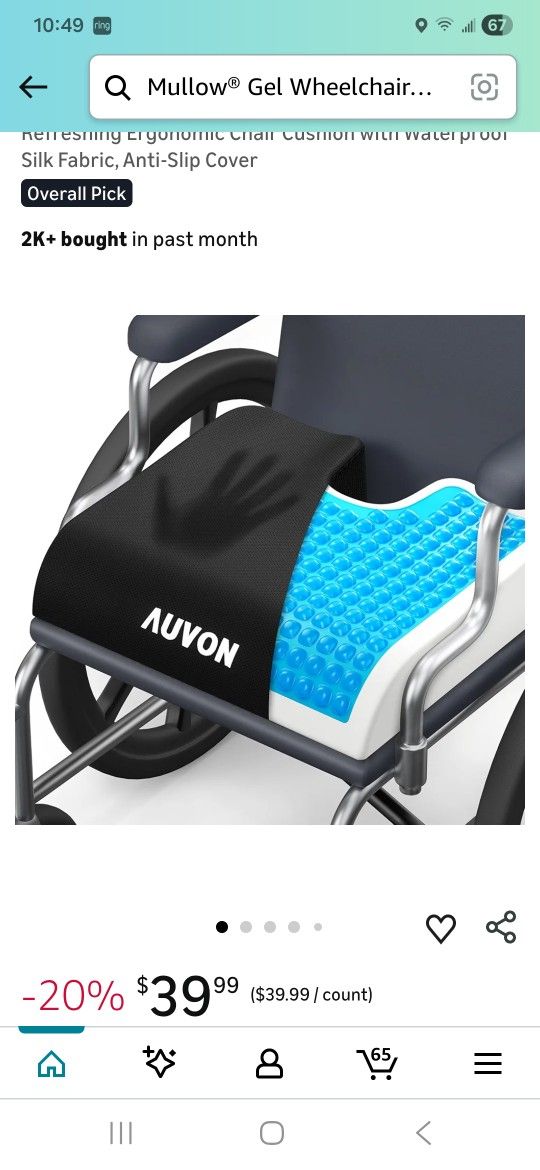 AUVON Gel Wheelchair Seat Cushion, Relieve Sciatica, Back, Coccyx, Pressure Sore and Ulcer Pain, Refreshing Ergonomic Chair Cushion with Waterproof Silk Fabric, Anti-Slip Cover It can be used for office chairs or for cars NEW
