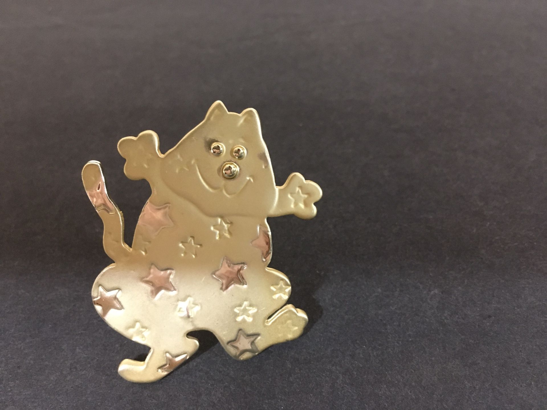 Star Studded Happy Cat Brooch Gold Tone 1 1/5” X 2”
