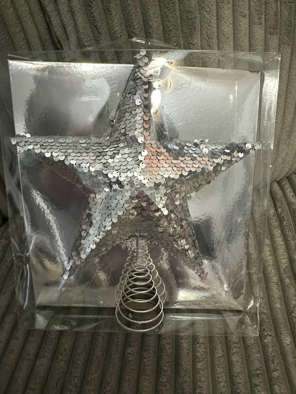 World Market Silver Sequin Tree Topper New in box - retails 15.00 Metairie porch pickup Cross posted