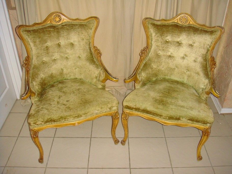 2 French Victorian Chairs, lime green color. Great condition.