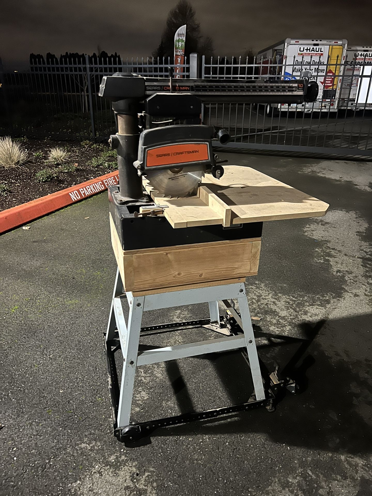 Sears Craftsman table saw works great. Comes with base and a rolling cart that sits under base. Pickup in Sumner Only