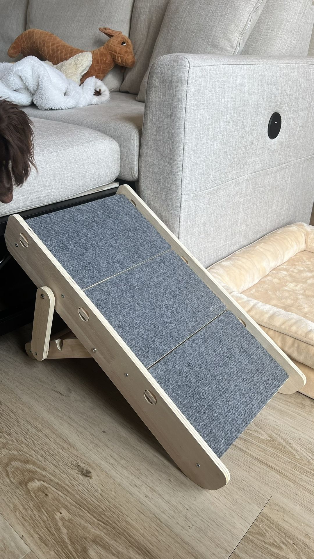 Make your furry friend’s life easier with this foldable and adjustable wooden pet ramp! Ideal for small breeds, senior pets, or those recovering from surgery. Gently helps your dog reach the couch or bed without jumping or straining. ✔️ Sturdy wooden frame ✔️ Adjustable height settings ✔️ Foldable for easy storage ✔️ Non-slip carpet surface for better grip ✔️ Already assembled!