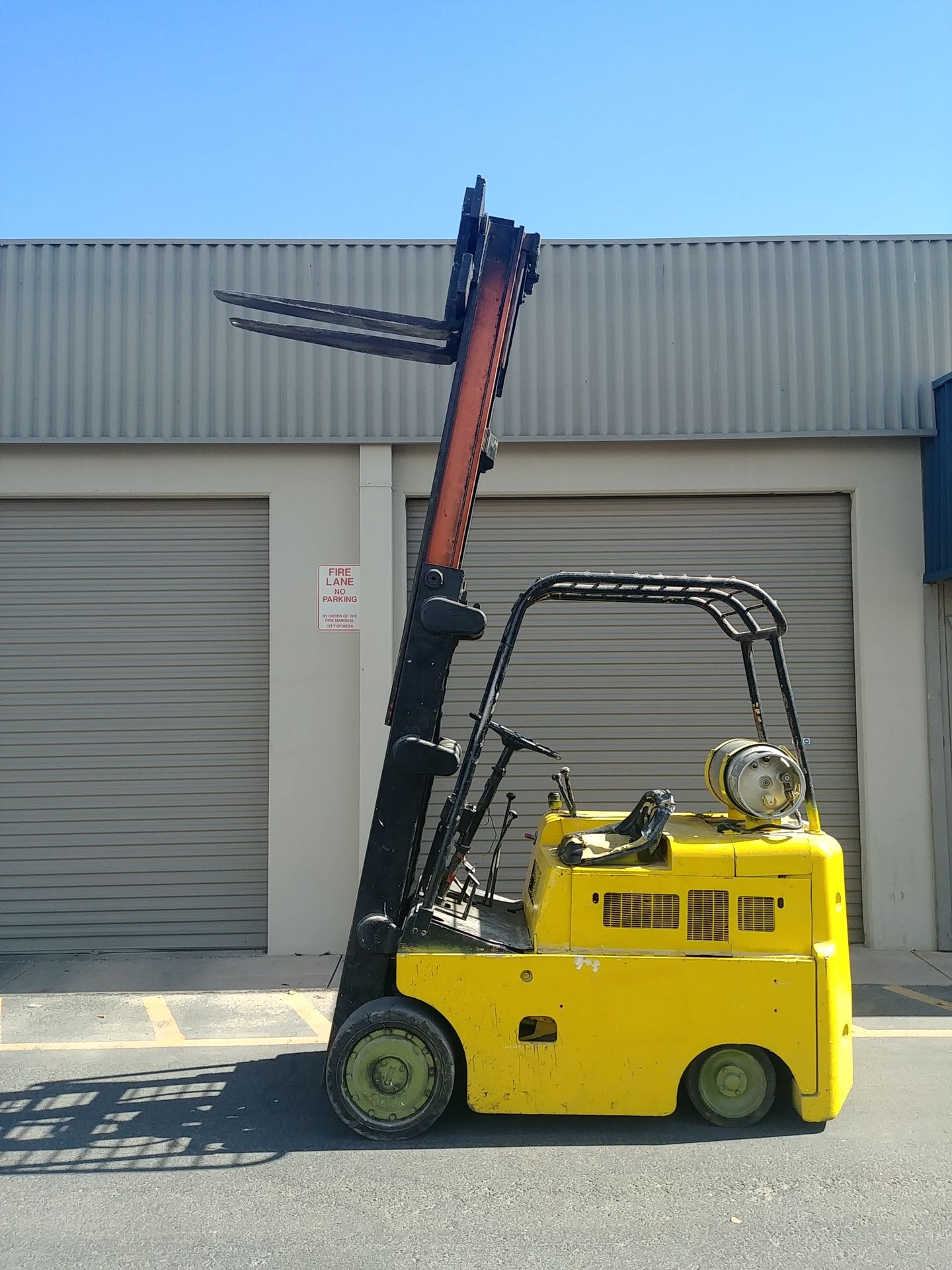 Heavy duty fork lift with inline 6 propane engine runs and lifts but forks are not holding. Probably a bypass leak in the mast. Mast is a triple mast. OBO