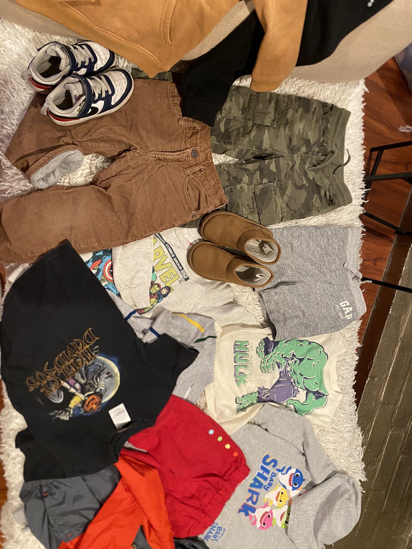 Nike shoes, gap Uggs size 10 , pants , joggers , Champion set, shorts, swimming shorts, Harley-Davidson t-shirt , Pj Mask Halloween , and many more