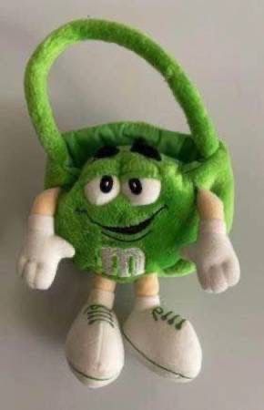 Collectible Green M&M Plush Basket With Handle Dimensions: 9-1/2” H * ALL SALES ARE FINAL, NO HOLDS, RETURNS, REFUNDS, TRADES OR EXCHANGES *