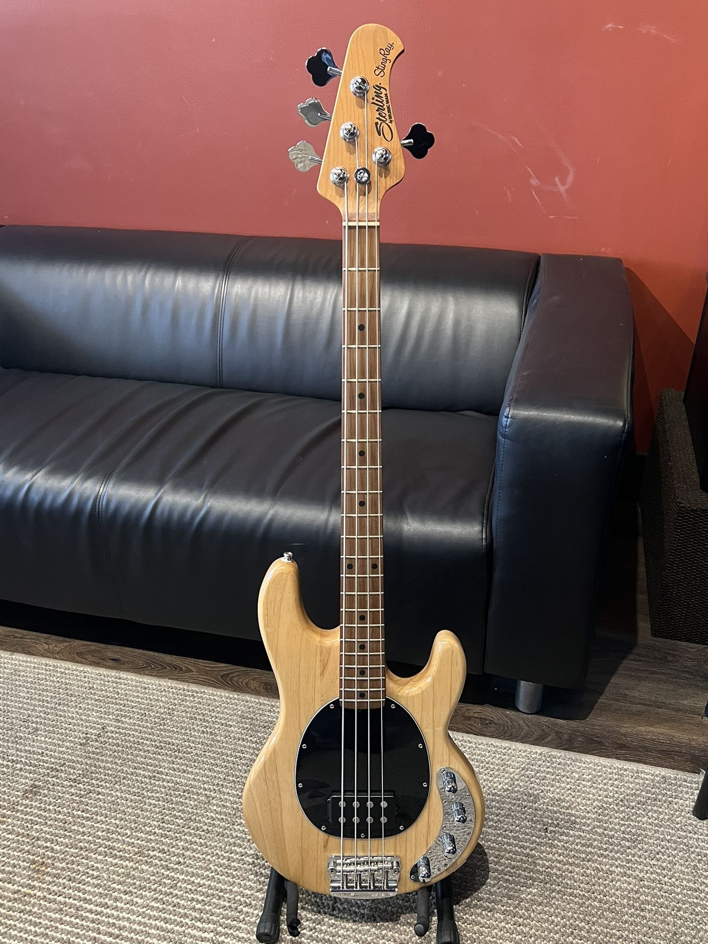 Music Man Sterling StingRay Ray34 Electric Bass Guitar w GigBag This Bass is a Monster! It has been professionally Setup and Plays and Sounds Amazing!! Features a Natural Ash Body, Roasted Maple Neck, Active Humbucker Pickup with 3 Band EQ. Comes with GigBag Case!!