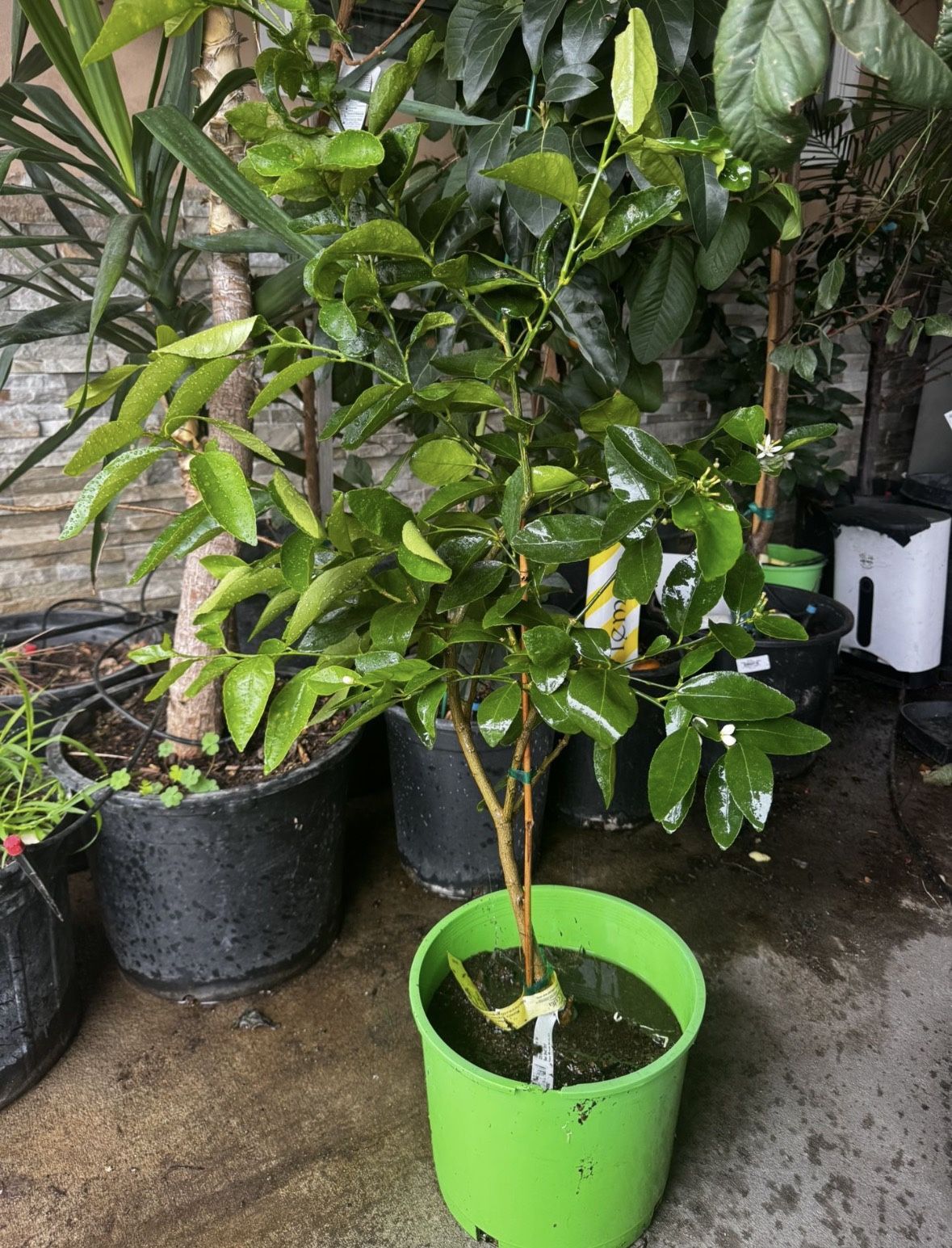 Organic Bearss Lime Fruiting Tree - Ready to Harvest Juicy Limes! Are you looking to add a touch of tropical flair to your garden or patio while enjoying fresh, homegrown limes? This organic Bearss Lime tree (Citrus × latifolia), also known as Persian or Tahitian Lime, is a vigorous, fruiting specimen that’s perfect for urban gardeners in sunny climates like Los Angeles, California. 0 Grown organically without synthetic pesticides or fertilizers, this tree is already showing signs of maturity with lush green foliage and the potential to bear fruit soon. Ideal for containers or planting in the ground, it’s a low-maintenance addition that rewards you with seedless, juicy limes year-round in the right conditions. Tree Overview This particular Bearss Lime tree is approximately 2-3 feet tall, potted in a vibrant green 1-gallon container for easy transport and immediate placement. The leaves are dark green, elongated, and glossy, typical of healthy citrus plants, with a sturdy central trunk and branching structure that’s ready to support future growth and fruit production. 1 As a semi-dwarf variety, it can reach 10-15 feet when planted in the ground but stays more compact in pots, making it suitable for patios, balconies, or indoor spaces with ample light. 0 Developed by John T. Bearss in Porterville, California, this tree is less thorny and more cold-hardy than other lime varieties, thriving in USDA zones 9-11. 2 Bearss Limes are renowned for their medium-sized, round or oval fruits with smooth, thin green skin that turns yellow when fully ripe in cooler climates like Southern California. 3 The juice is less acidic and slightly sweeter than Key limes, offering a balanced tangy flavor perfect for cocktails, marinades, desserts, and fresh eating. 0 These limes are typically seedless (with three or fewer seeds classifying them as such), making them convenient for culinary use. 3 Expect heavy crops, especially in fall, that store well on the tree if protected from frost. 3 Here’s what the mature fruit looks like on a Bearss Lime tree: 0 “LARGE” 1 “LARGE” 2 “LARGE” Why Choose This Organic Bearss Lime Tree? • Organic Certification: Grown using natural methods, ensuring no harmful chemicals – safe for you, your family, and the environment. • Fruiting Ready: This tree is at a fruiting age, with potential blooms and limes appearing in late winter to spring, depending on care. 8 • Versatile Uses: Harvest limes for fresh juice, zest, or even mixing with lemons for a unique citrus blend. 4 Almost as big as lemons, they’re greenish-yellow, seedless, and incredibly juicy. 4 • Beginner-Friendly: One of the easiest citrus trees to grow, suitable for indoors or outdoors in warm areas. 0 It’s highly productive and resilient, making it great for home orchards or cocktail gardens. 7 • Health Benefits: Limes are packed with vitamin C, antioxidants, and can aid digestion – enjoy the perks of organic homegrown produce. Planting and Care Instructions To ensure your Bearss Lime tree thrives, follow these step-by-step guidelines tailored for organic growing: 1. Location and Climate • Plant in a spot with full sun exposure – at least 8-12 hours daily for optimal fruit production. 0 It thrives in warm, tropical to subtropical climates but is the most cold-hardy lime variety. 3 • In Los Angeles, it’s perfect for outdoor planting year-round, but protect from rare frosts by covering or moving indoors. • If keeping in a pot, use a container with drainage holes to prevent root rot. 2. Soil Requirements • Use well-draining, slightly acidic to neutral soil (pH 6.0-7.0). 0 A mix of native soil, orchid bark, and organic mulch works well for richness and drainage. 1 • For organic growth, amend with compost or worm castings instead of synthetic fertilizers. 3. Watering • Water 2-3 times a week in summer, ensuring the soil stays moist but not waterlogged – it cannot dry out completely. 1 Use a drip system for even distribution around the root zone. • Reduce watering in cooler months, checking the top 2 inches of soil for dryness. 4. Fertilization • Fertilize 3-4 times a year with an organic citrus-specific fertilizer to support vigorous growth and fruiting. 1 • Apply in spring, summer, and fall for best results, avoiding over-fertilization to prevent leaf burn. 5. Pruning and Maintenance • Prune lightly in late winter to shape the tree and remove any suckers from the rootstock (below the graft line) to maintain health. 1 • Watch for common issues like aphids or scale; use organic neem oil sprays for control. • This tree self-pollinates, so no need for a second tree – just one will produce abundantly. 8 6. Harvesting • Fruits mature in 6-8 months after flowering. Pick when green for tart flavor or yellow for milder taste. • In California, expect the heaviest crop in fall, with fruits storing well on the tree. 3 Additional Notes This tree is a resilient evergreen that can reach 8-20 feet tall when mature, but it’s beginner-fr