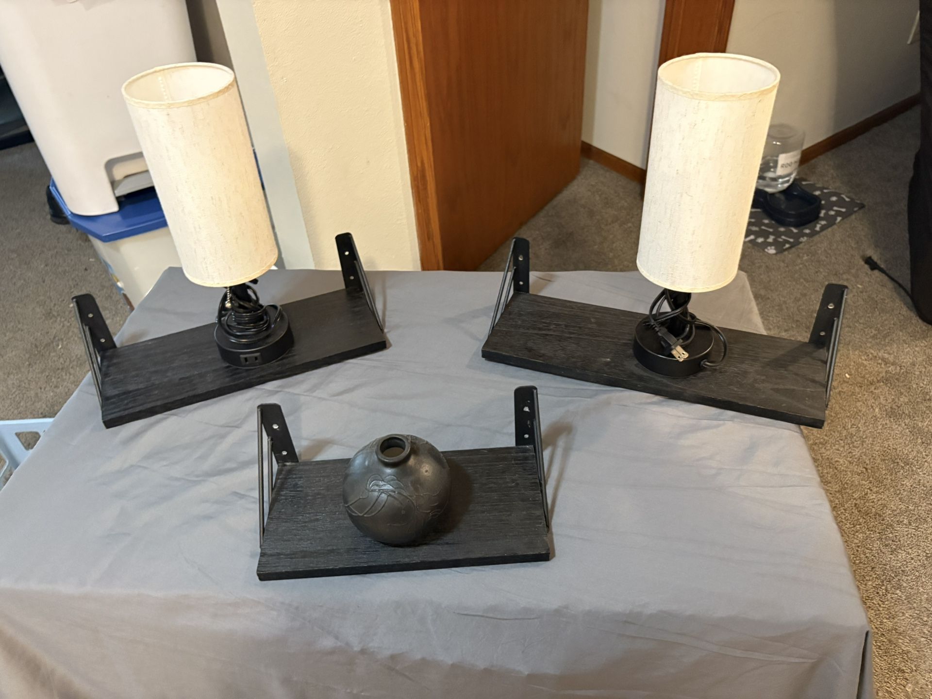 Bought these a few months ago. Trying to downsize immensely Work great and both have an additional outlet to plug into on the lamp itself. I’m asking 40obo I believe I paid somewhere between 55-65 for them all but it’s been a while so I can’t recall the exact price