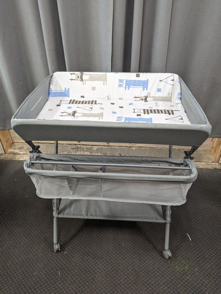 Baby Changing Table with Wheels, Maydolly Portable Adjustable Height Folding Diaper Station with Nurseryba Organizer & Storage Rack for Newborn Baby and Infant, Grey Pattern