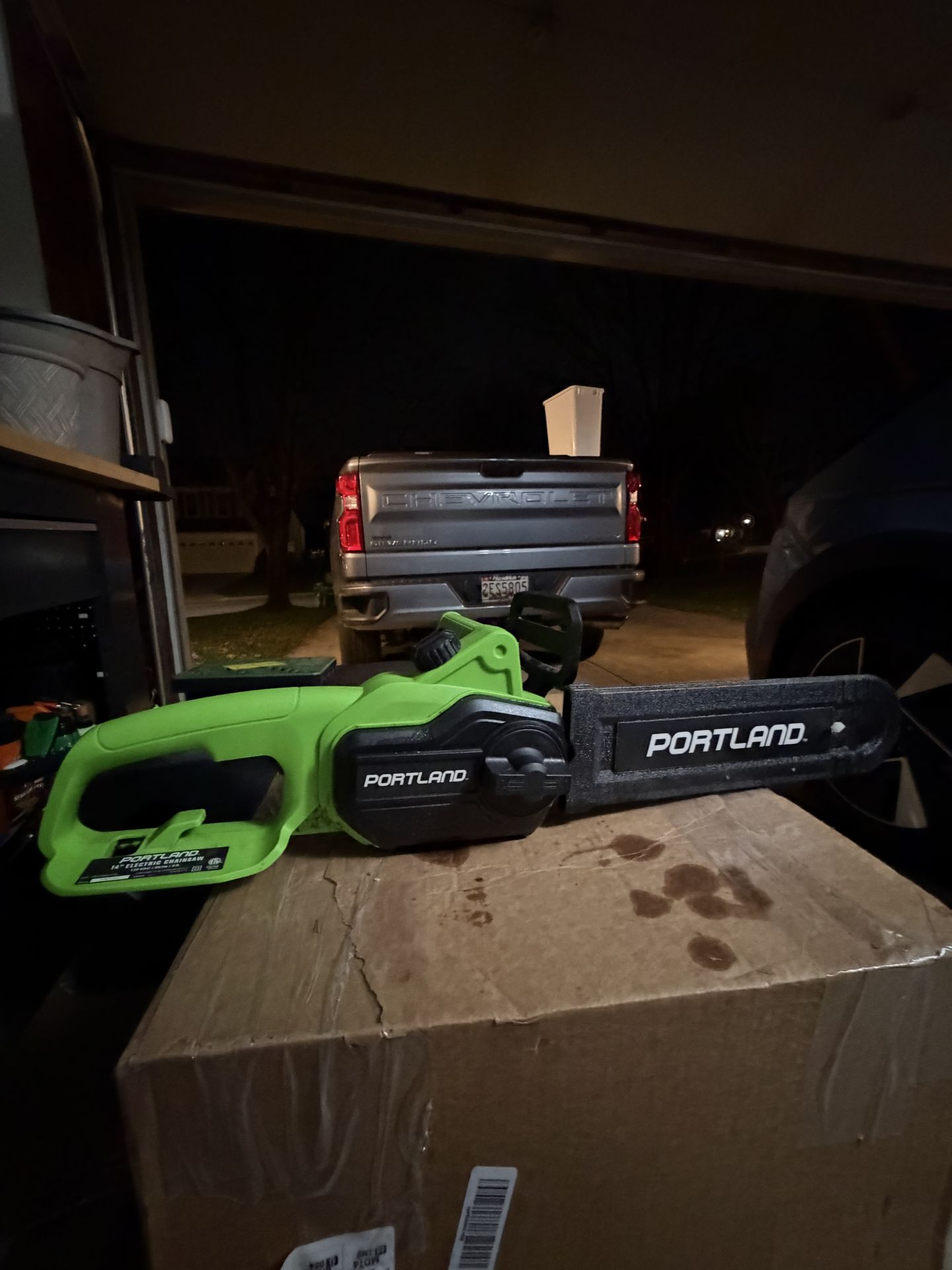 Portland 14 inch corded chainsaw. Used a few times. Might need to sharpen the chain or replace it since it’s been used.