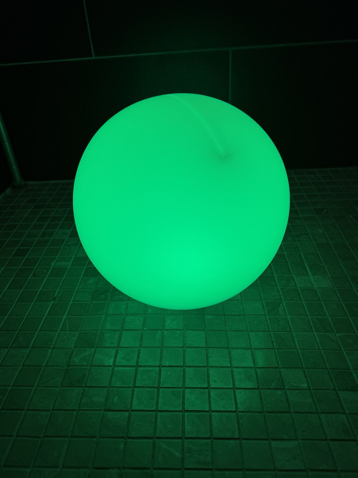 9.5 inches. Uses 3 X AA batteries ( not included) Many colors settings. 6 orbs total- $150 Or $30 each