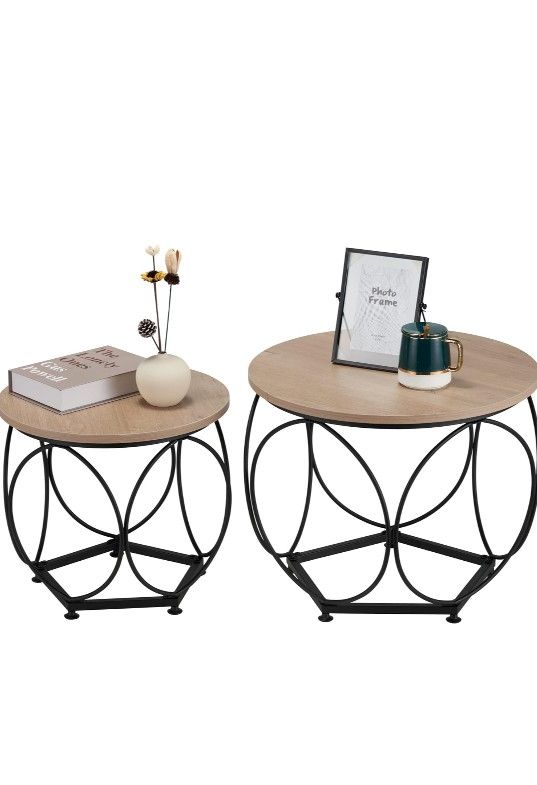 End Tables Living Room Set of 2, Steel Frame, Round Coffee Table for Living Room, Bedroom, Office