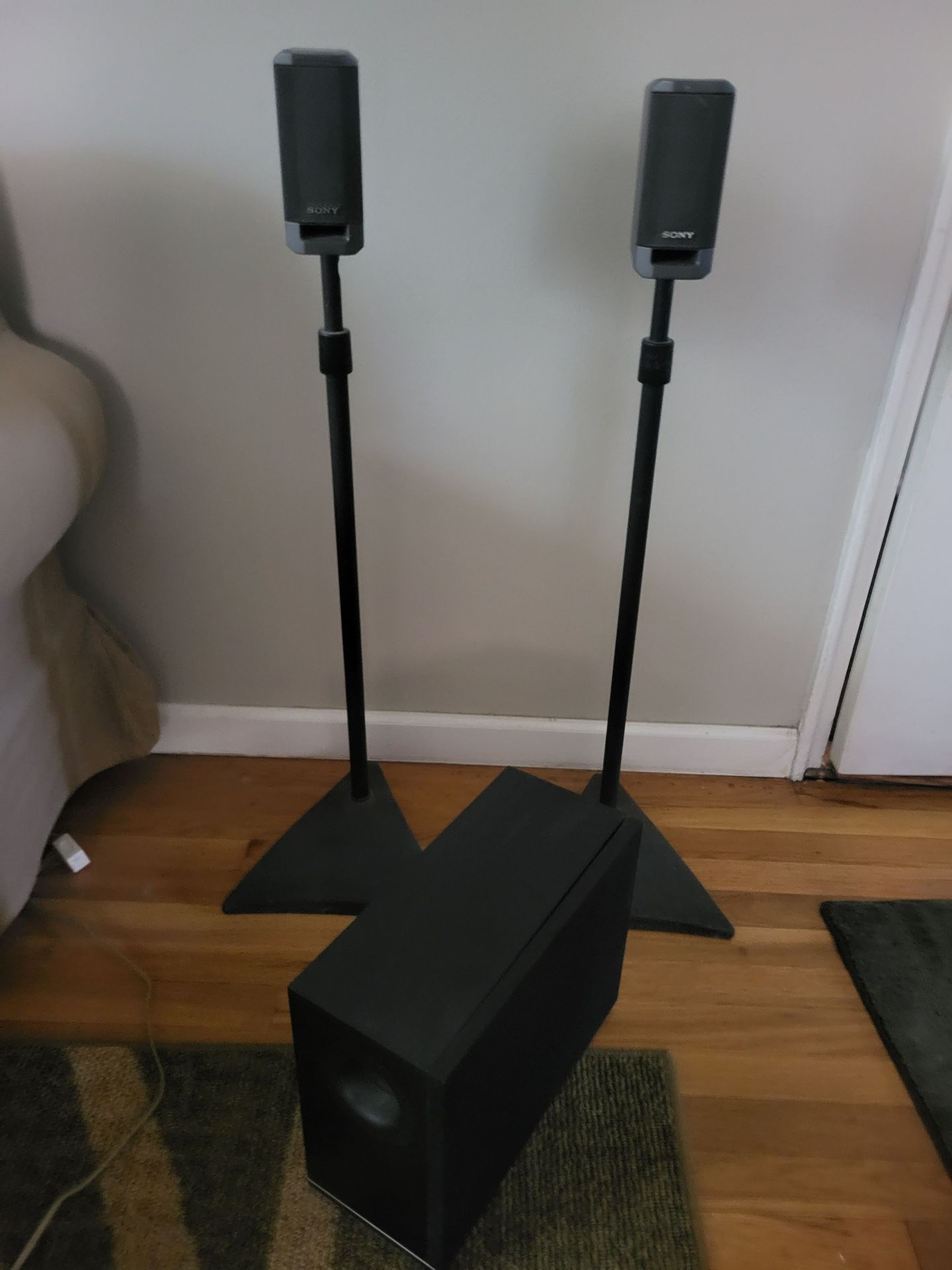 Great buy !!! SONY 2 sturdy metal base wired Speakers in great condition barely used. Cash at pick up only in Whitestone/Queens