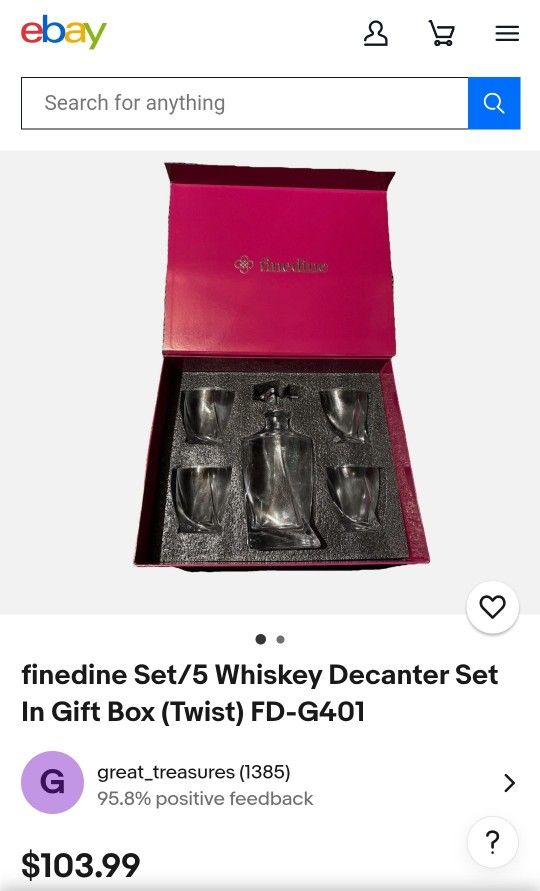 Finedine whiskey decanter glass set. New, in box. $50 pick up in Jurupa Valley
