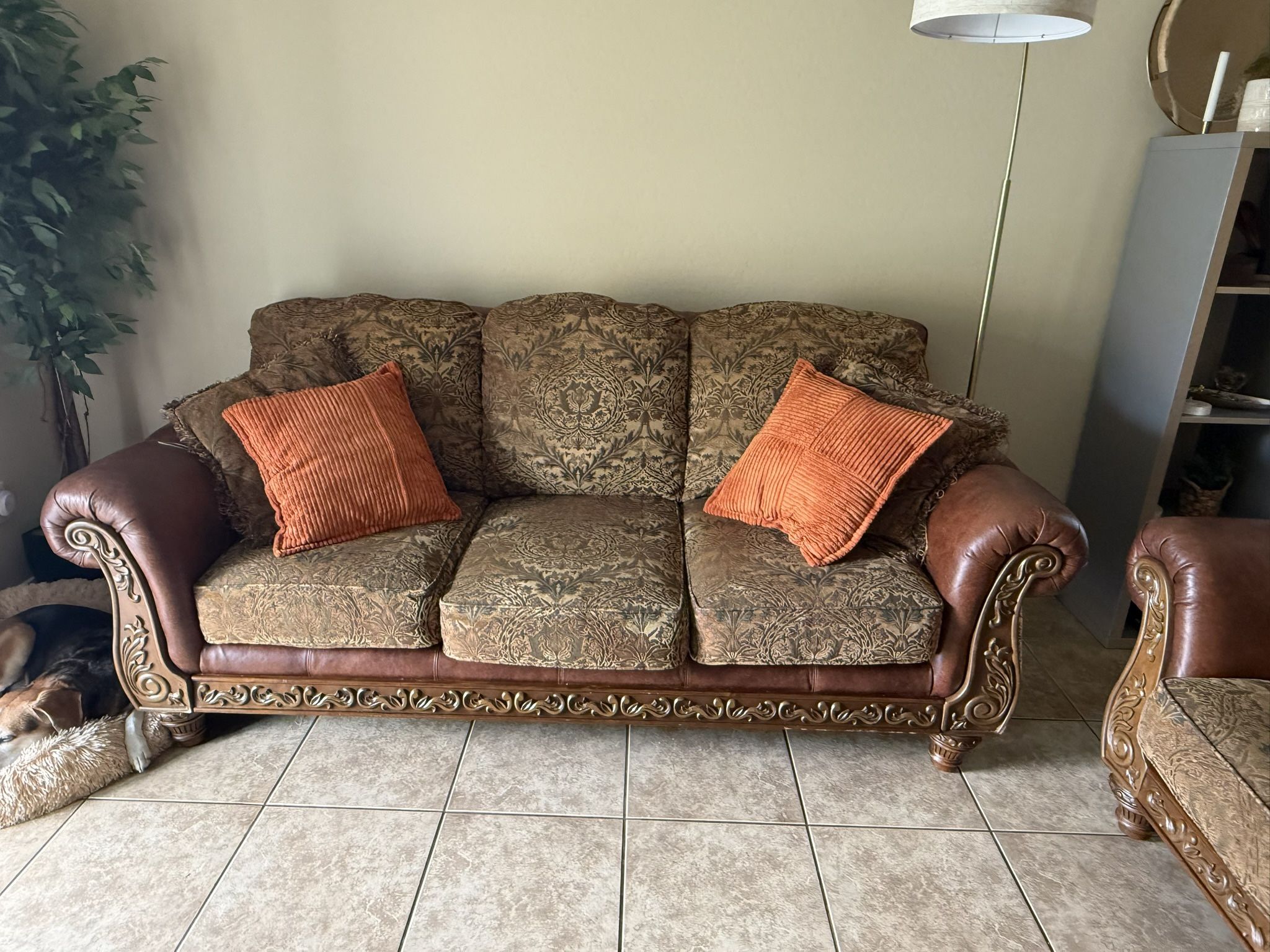 Ashley Furnituere leather and fabric sofa and love seat and leather couch for sale