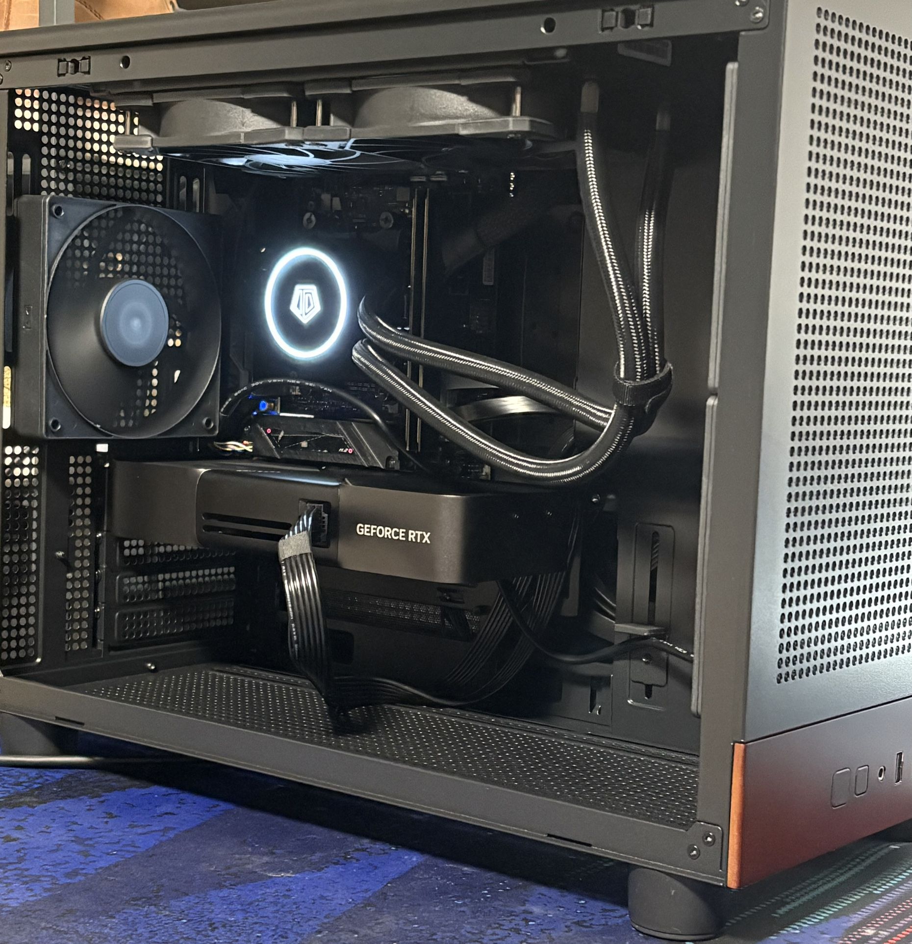 The latest iteration in the Gentleman line. A perfect mixture of size and performance. Equipped with a Ryzen CPU ready to be overclocked past the already blazing 5.4 Ghz boost speed. and a 5070 with 12 GB of VRAM that will handle 1440p gaming and smaller (7B) local AI models, this machine is as powerful as it is sophisticated. Because sometimes you just want a PC to look like a PC and not like a Christmas tree decorated by a 13 year old. The only visual cue you'll get is a a white light from the cooler through the glass. All parts are new except where noted. Parts List: CPU: AMD Ryzen 9600x (6c/12t) Cooler: ID-Cooling Frostflow 240mm AIO Mobo: Asus B650E-I* WIFI 6E, BT (One broken ram clip, but it does not affect function or maintenance. Fully tested with multiple ram kits/speeds) Memory: Silicon Power DDR5 32 GB 6000mhz, CL36 Storage: Teamgroup G50 2 TB Gen4 Nvme GPU: Nvidia RTX 5070 Founder's Edition Case: Gamdias Athena M4M (the redwood accent looks fantastic imo) PSU: Gamdias Helios P2 850w 80+ Gold OS: Windows 11 Pro Activated Asking $1400. No trades. AS Systems come with warranty and support. Testing is available.