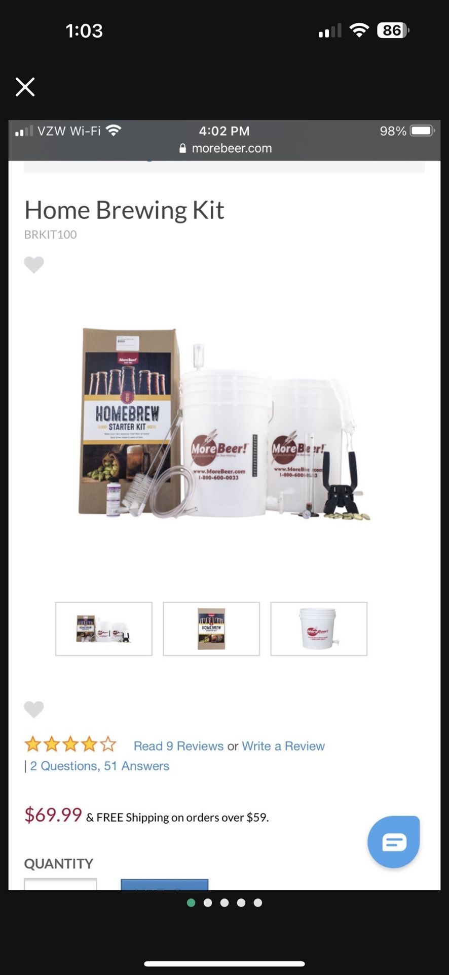 This is a brand new, still in box brewing kit. Kit includes all the components to home brew. Includes bottles, sanitizer and bottler . And 7 Deadly C’s IPA hops included. But can buy other types from MORE BEER. Kit has never been used. You will need to purchase fresh Yeast from More Beer. Paid over $130 for entire kit. Yours for much less. Excellent way to be introduced to craft brewing!