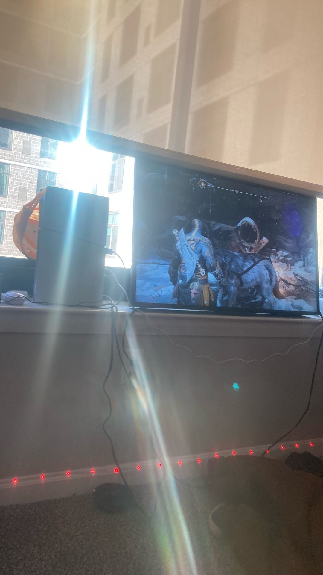 Ps5 With Tv And All Cords And God Of War