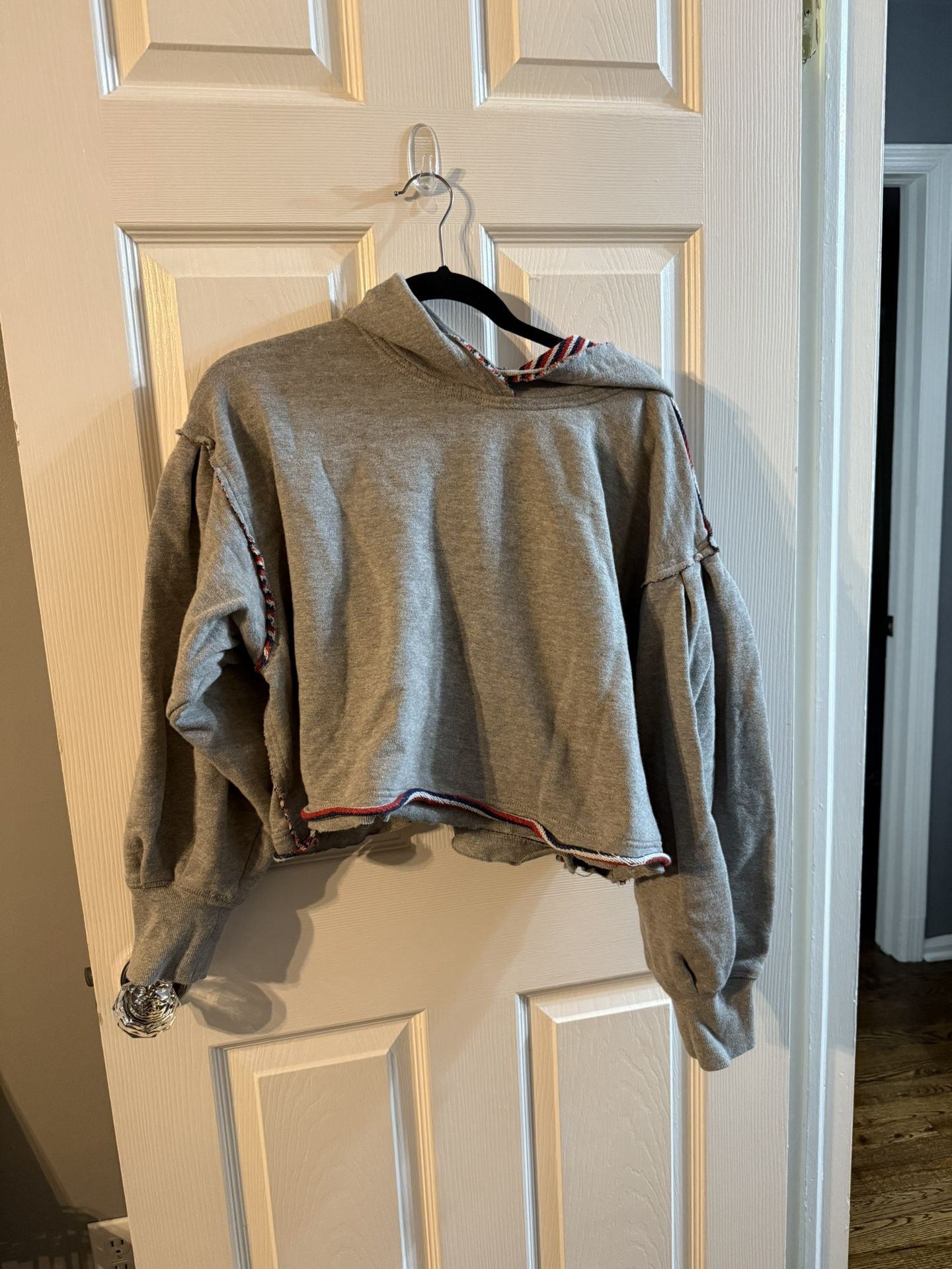 FP Movement reversible cropped sweatshirt size M Gray on one side and red white and blue stripes on the other Worn once