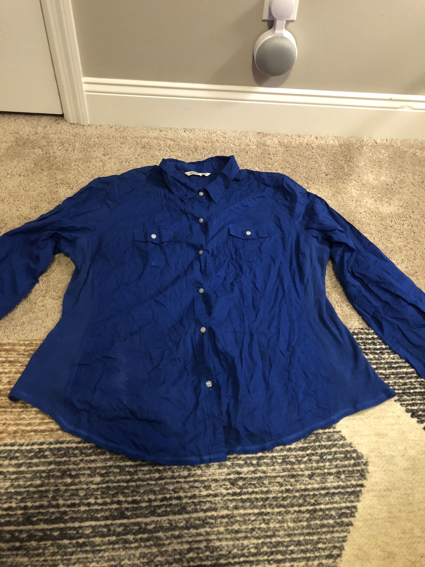 Old Navy Blue Button-Up Shirt Size xxl in women Previously owned Few discolorations in some areas May have a few more imperfections but both major that I could find
