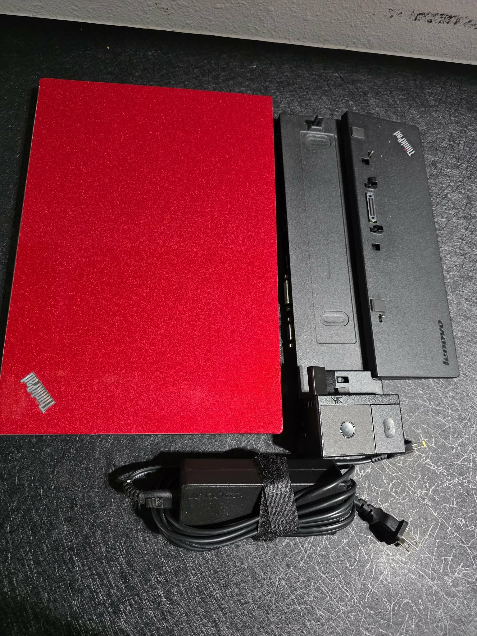 CANDY RED LENOVO THINKPAD T460 WINDOWS 11 PRO INTEL CORE I5 6TH GEN 15.6 SCREEN 8GB RAM 256GB SSD 2 BATTERIES BOTH AT 100% WEBCAM HDMI OUTPUT MULTIPLE USB PORTS BACKLIT KEYBOARD DOCKING STATION ORIGINAL CHARGER