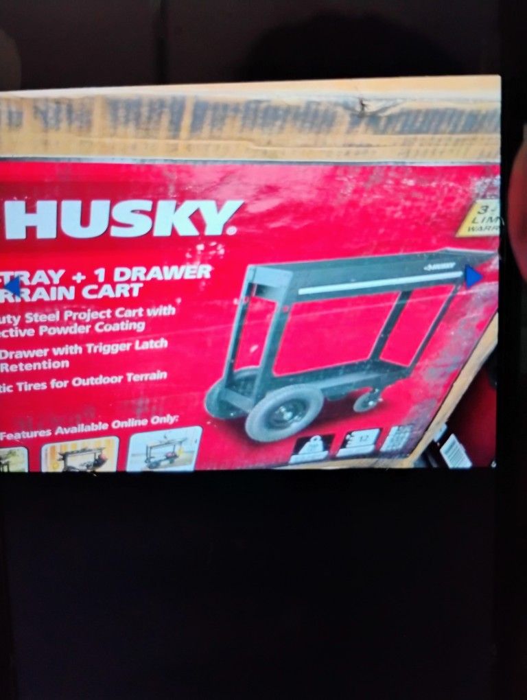 Husky All Terrain Black Rolling Utility Cart With Drawer