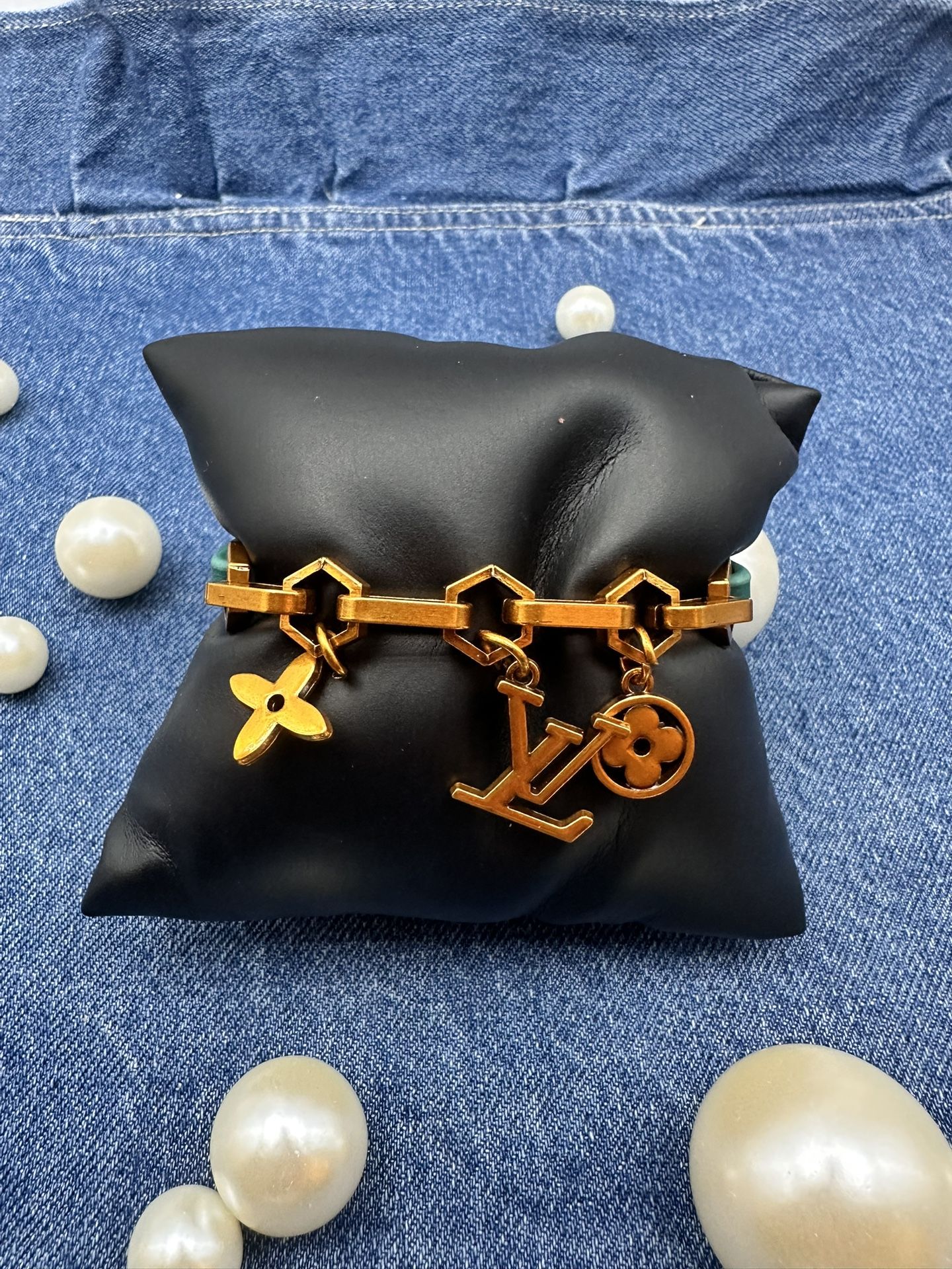 🌹Beautiful designer bracelet with green leather straps🌹 🌹Available for for shipping🌹 🛑Located in Victorville, Ca. 92392