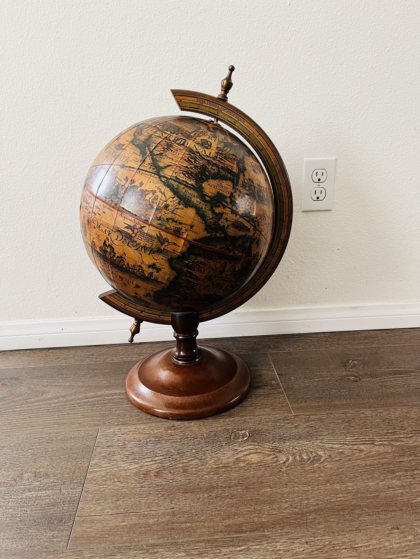 Vintage Italian Tabletop Word Globe Handcrafted 21 Inches Tall