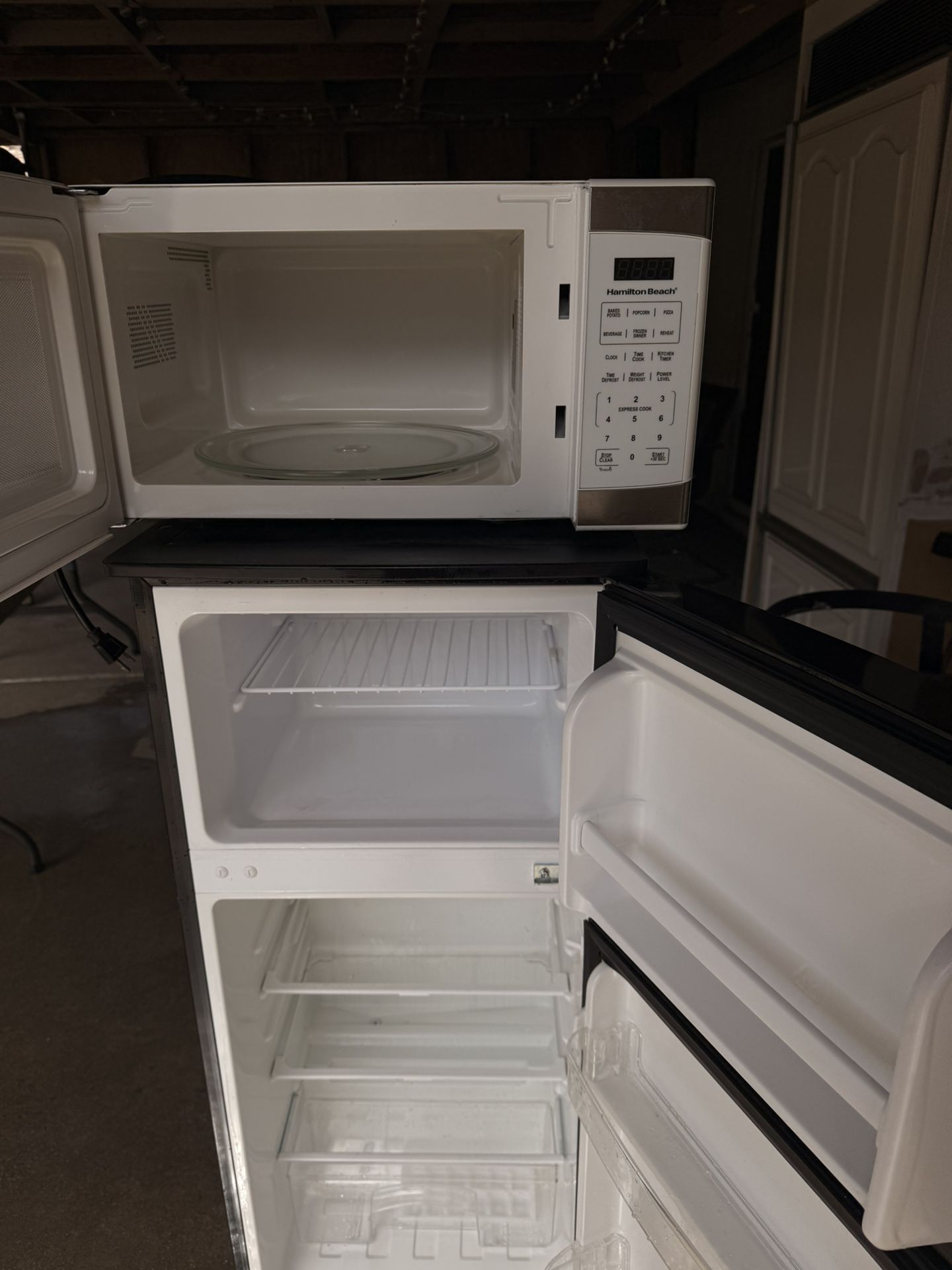Small Fridge and microwave, perfect for to keep in room. I can do 200$ for both or 120$ for each ☺️ Mssg me for more information!
