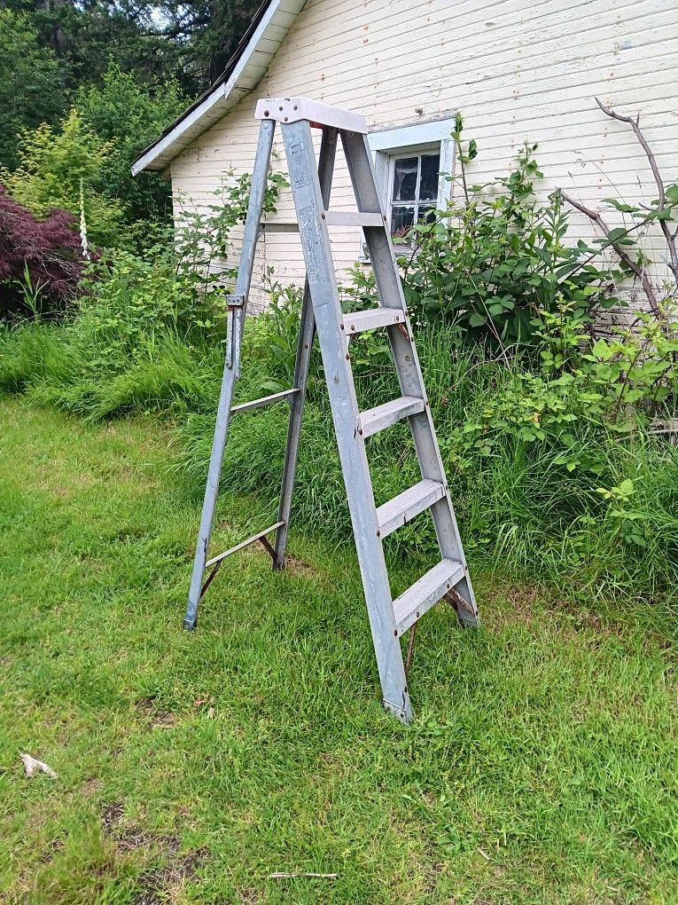 decent little ladder. 6 ft folding ladder. fiberglass frame and aluminum steps. the safety A arm support brackets fell out and could be reattached with 2 new bolts 🔩 🔩 and washers, the rest of the ladder is fine and can be used against buildings and such as it is. ✌️🤠♻️