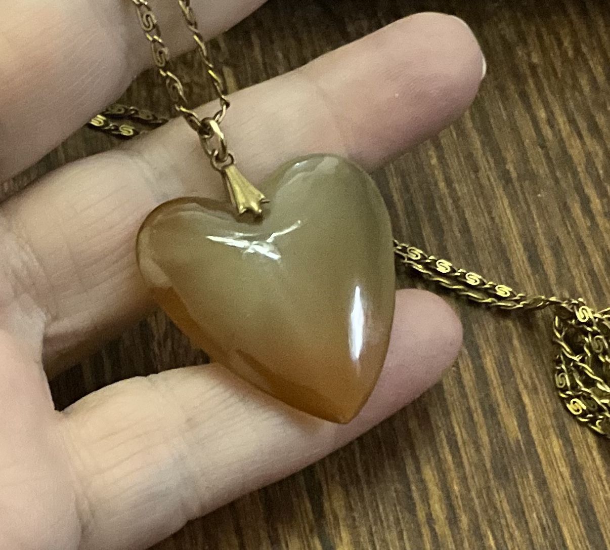 Antique Agate, Heart, Pendant, and 20 inch chain