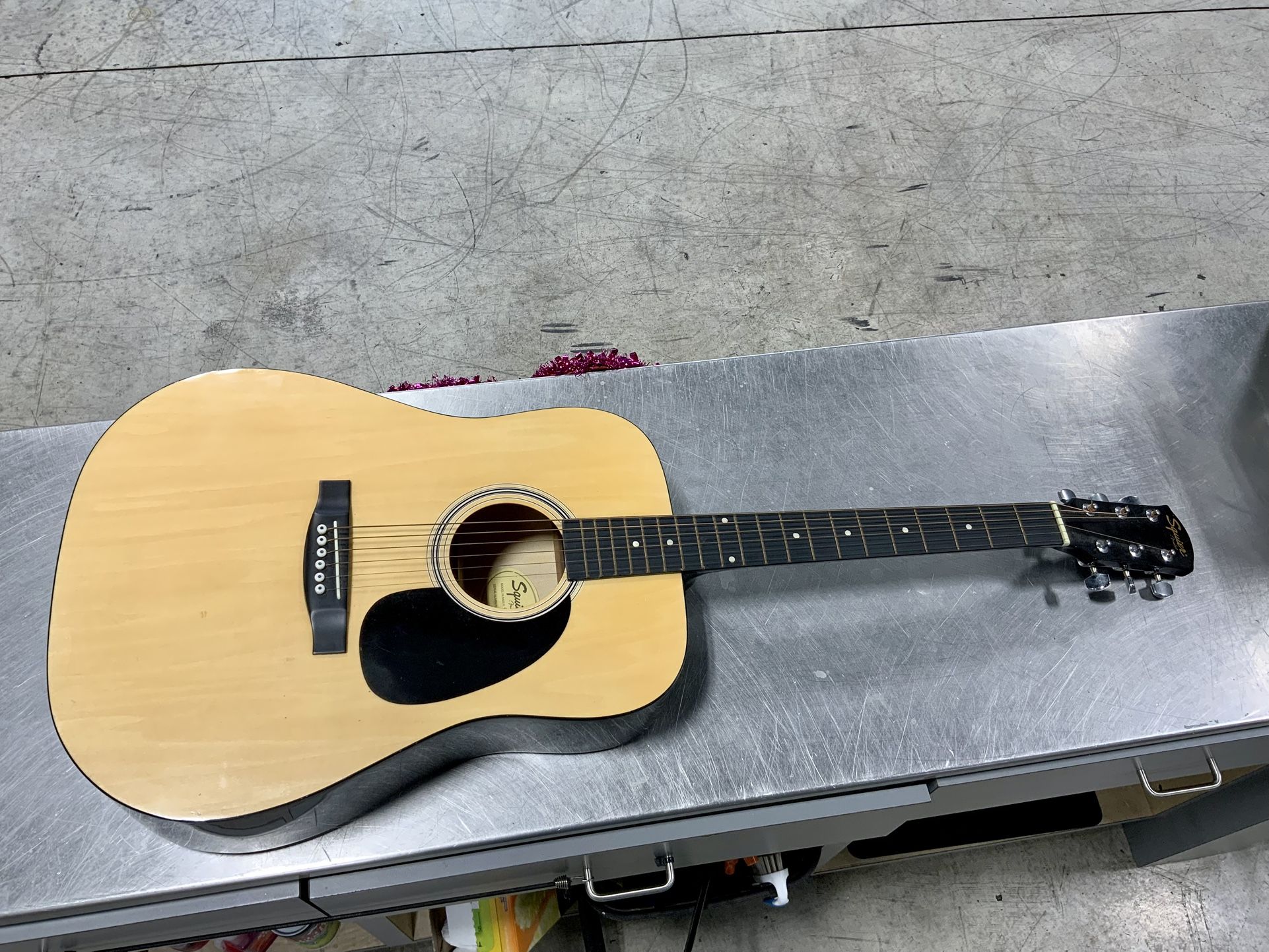 Squier by Fender acoustic guitar in great playing condition. Perfect for beginners, students, or anyone looking for a reliable and affordable acoustic guitar.This guitar has a warm, balanced tone and comfortable neck, making it easy to play for practice, lessons, or casual performances. 1. 0. 0.2. 2.4.2. 9.5.6– EA MV