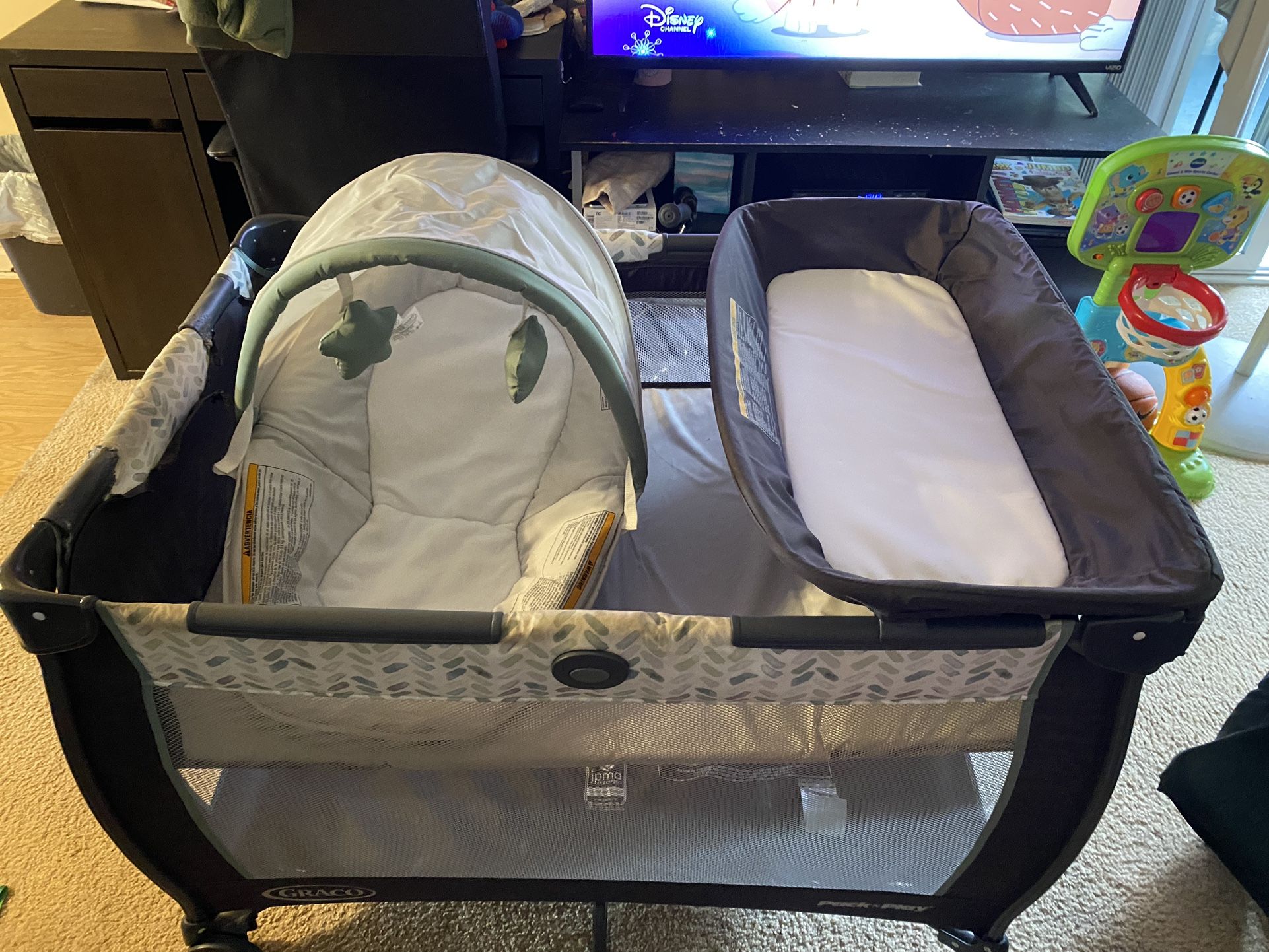 Asking $80 OBO Used Graco Pack 'n Play Care Suite Playard in Birch. Comes with mattress I purchased separate with a waterproof mattress protector. My dog sadly got ahold of the top part but everything still holds and clips into place. Original Purchase price 160 for pack n play 60 for mattress